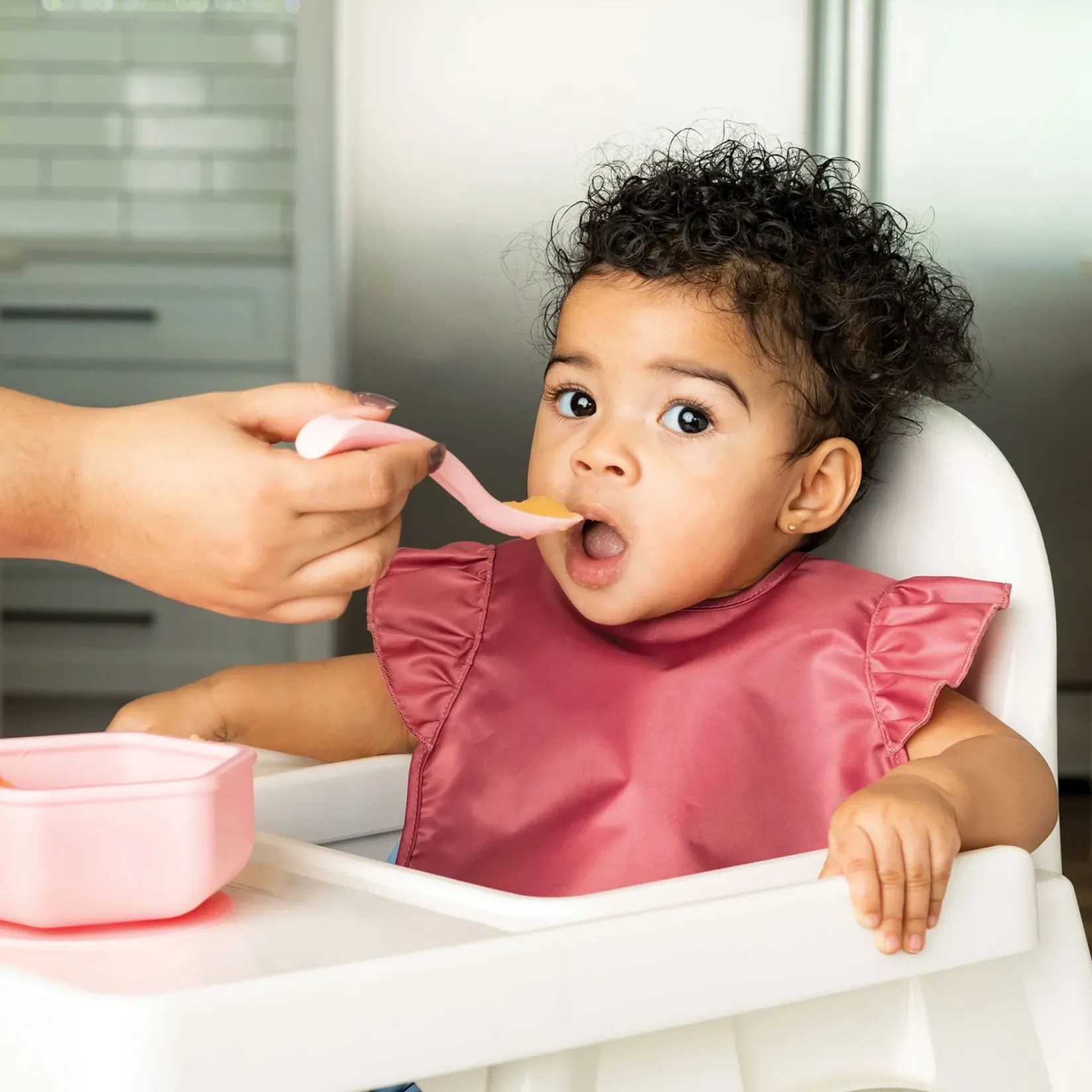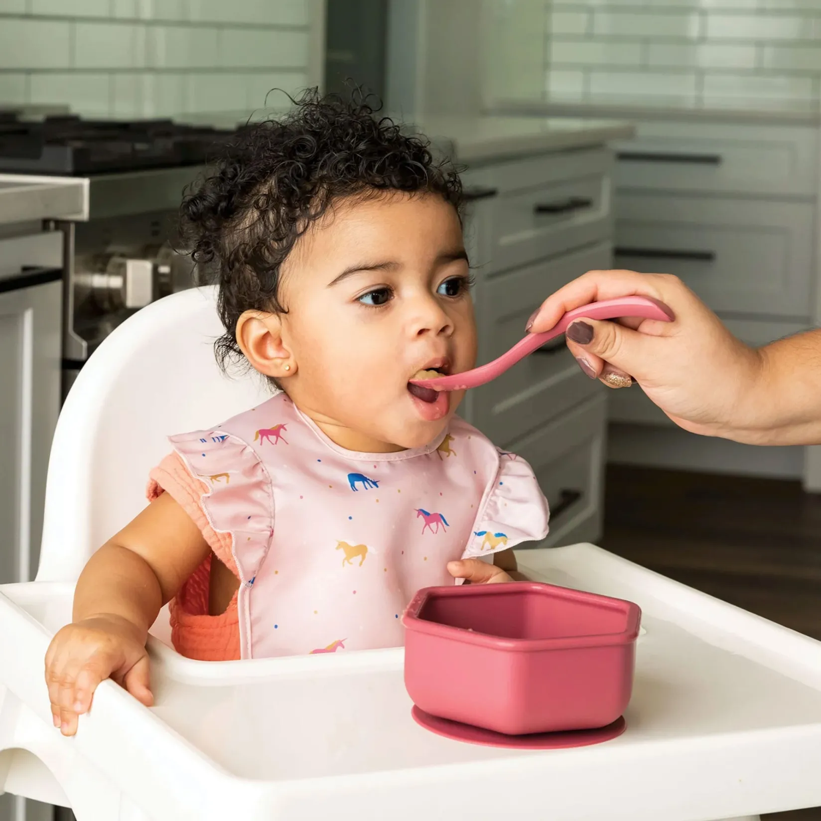 Tiny Twinkle’s Silicone Baby Spoons are the perfect feeding tool for parents to feed infants first purees. Made from 100% food grade silicone, they are durable yet flexible and soft on baby’s gums. Specifically designed with a long ergonomic handle to allow the spoons to reach to the bottom of jars. Shallow spoon bowls make perfect portions for feeding baby. Spoons are dishwasher and freezer safe. For use with ages 4 – 9 months, not intended for self feeding.
