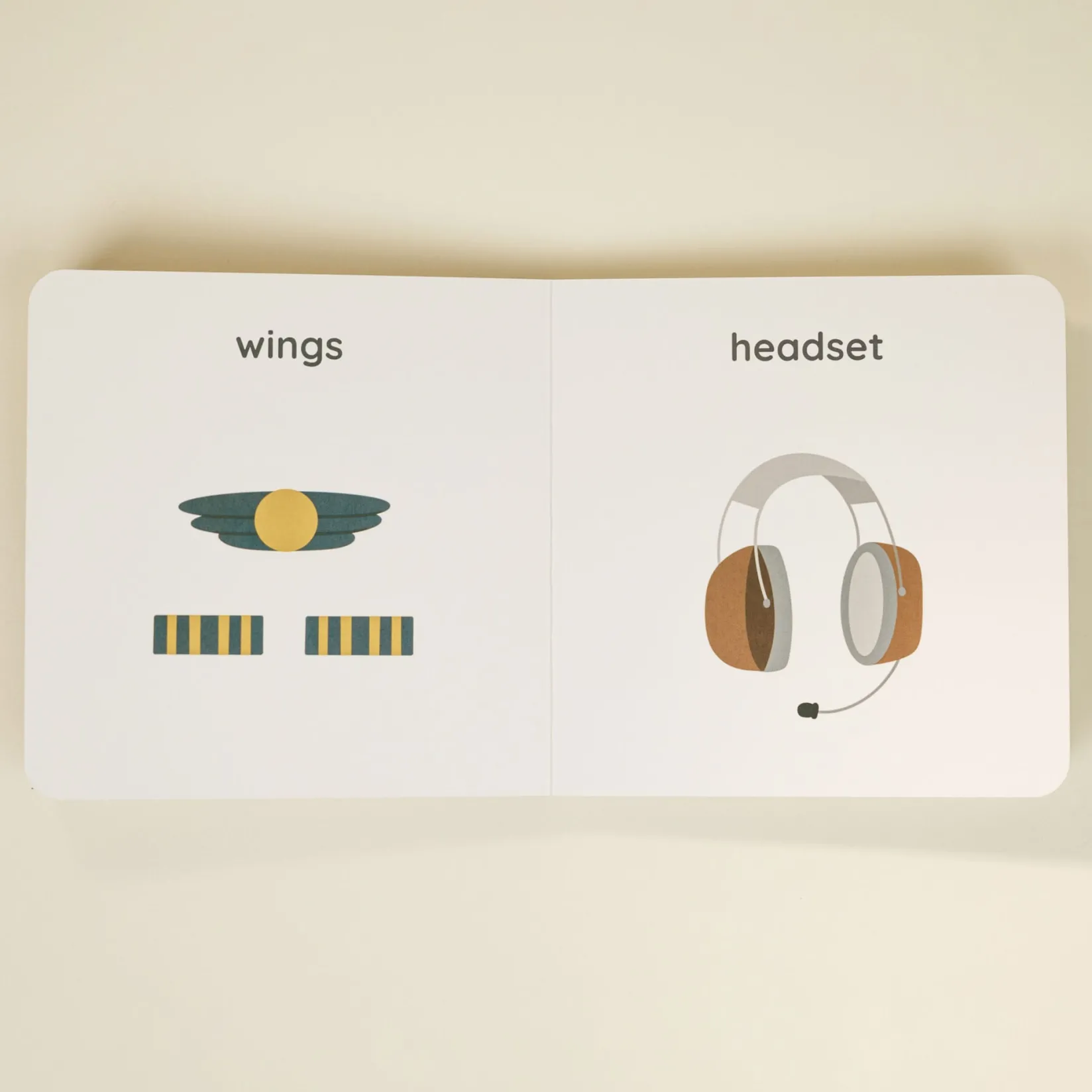 A simple board book that introduces toddlers to the elements of being a pilot through clear text and warm illustrations.