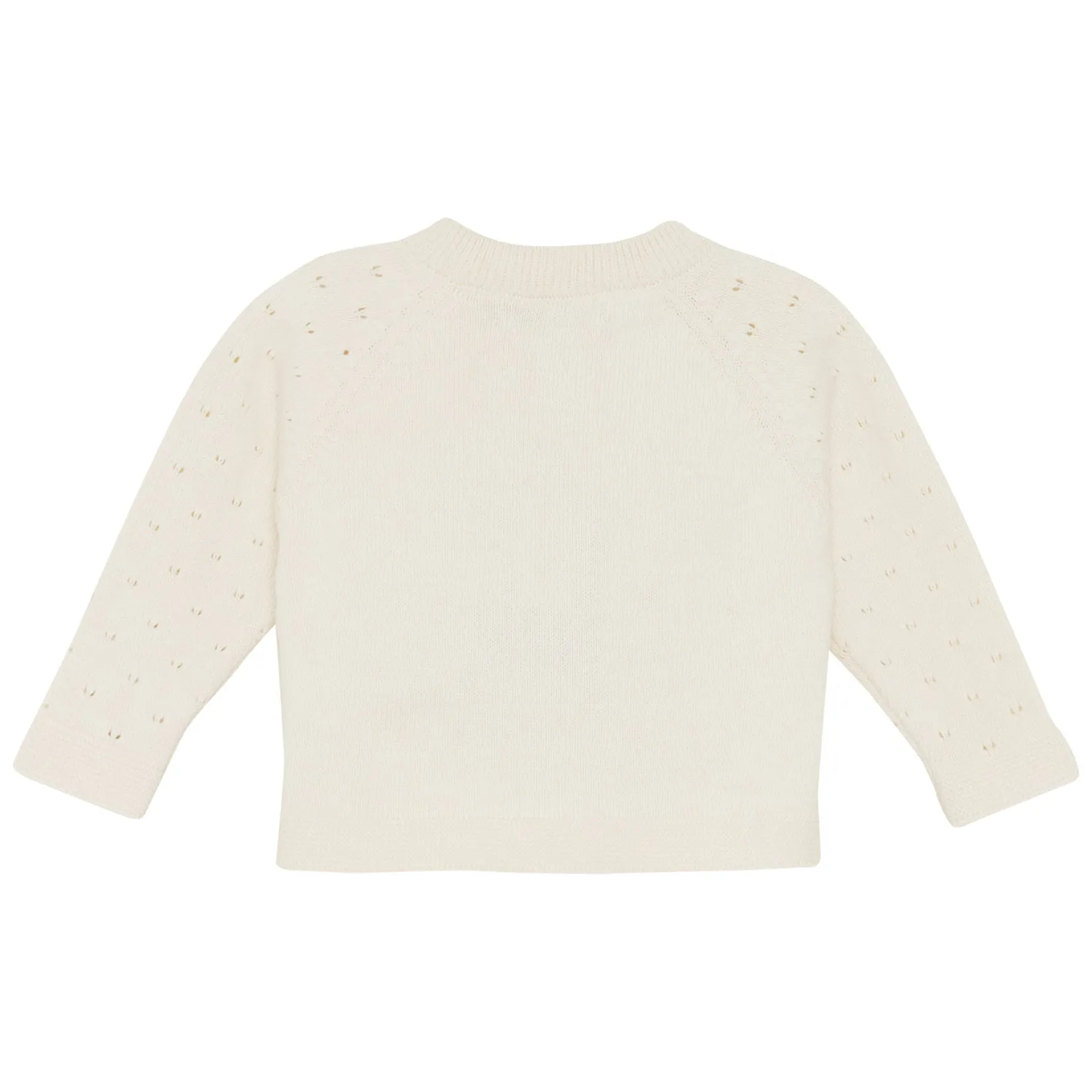 Cardigan from HUTTEliHUT with pointelle pattern. It has mother-of-pearl buttons. Certified acc. to GOTS – organic CERES-0366
