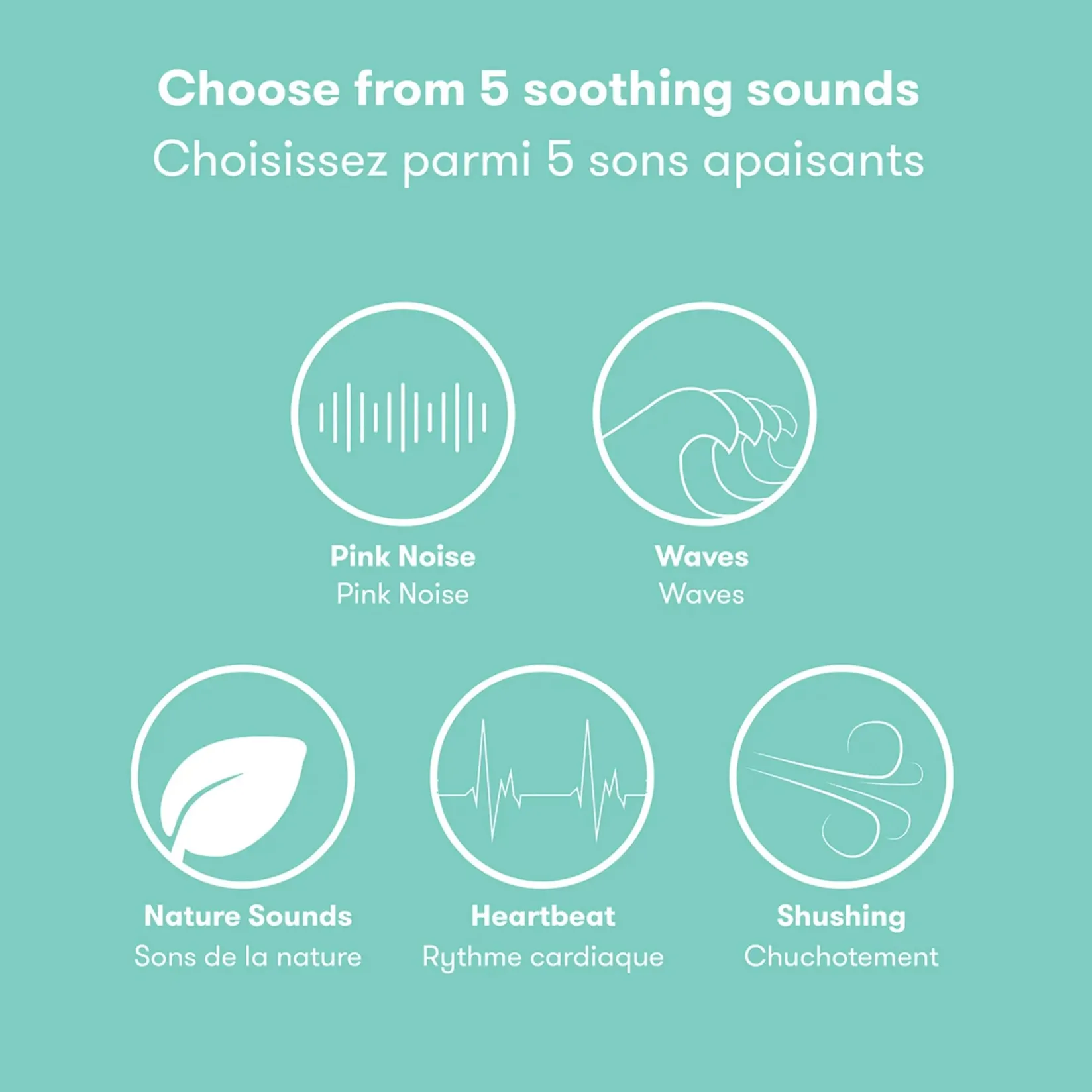 -Sound on: 5 soothing sounds including shushing and heartbeat