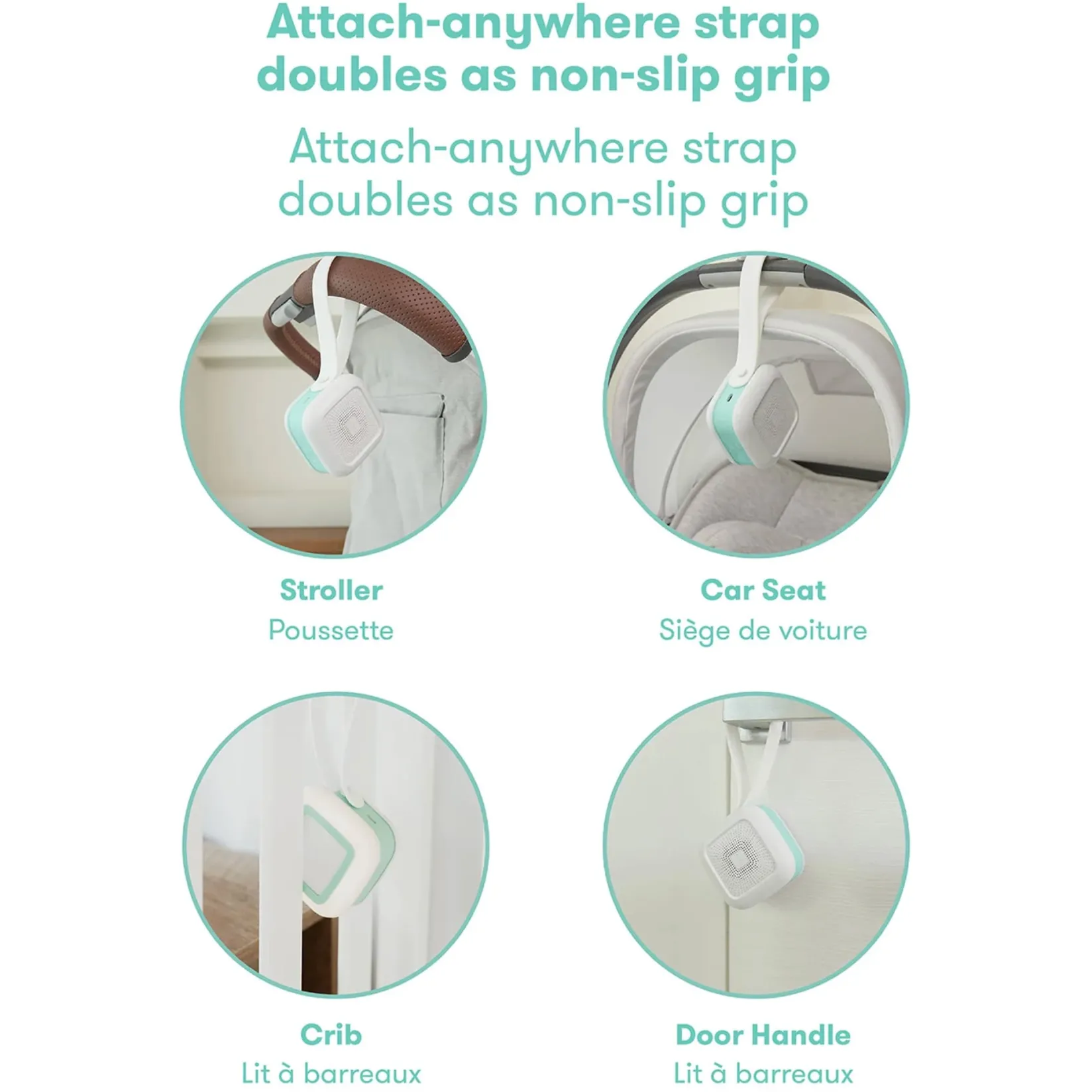 -Adjustable strap: attach-anywhere strap hooks to strollers, car seats, cribs, and more