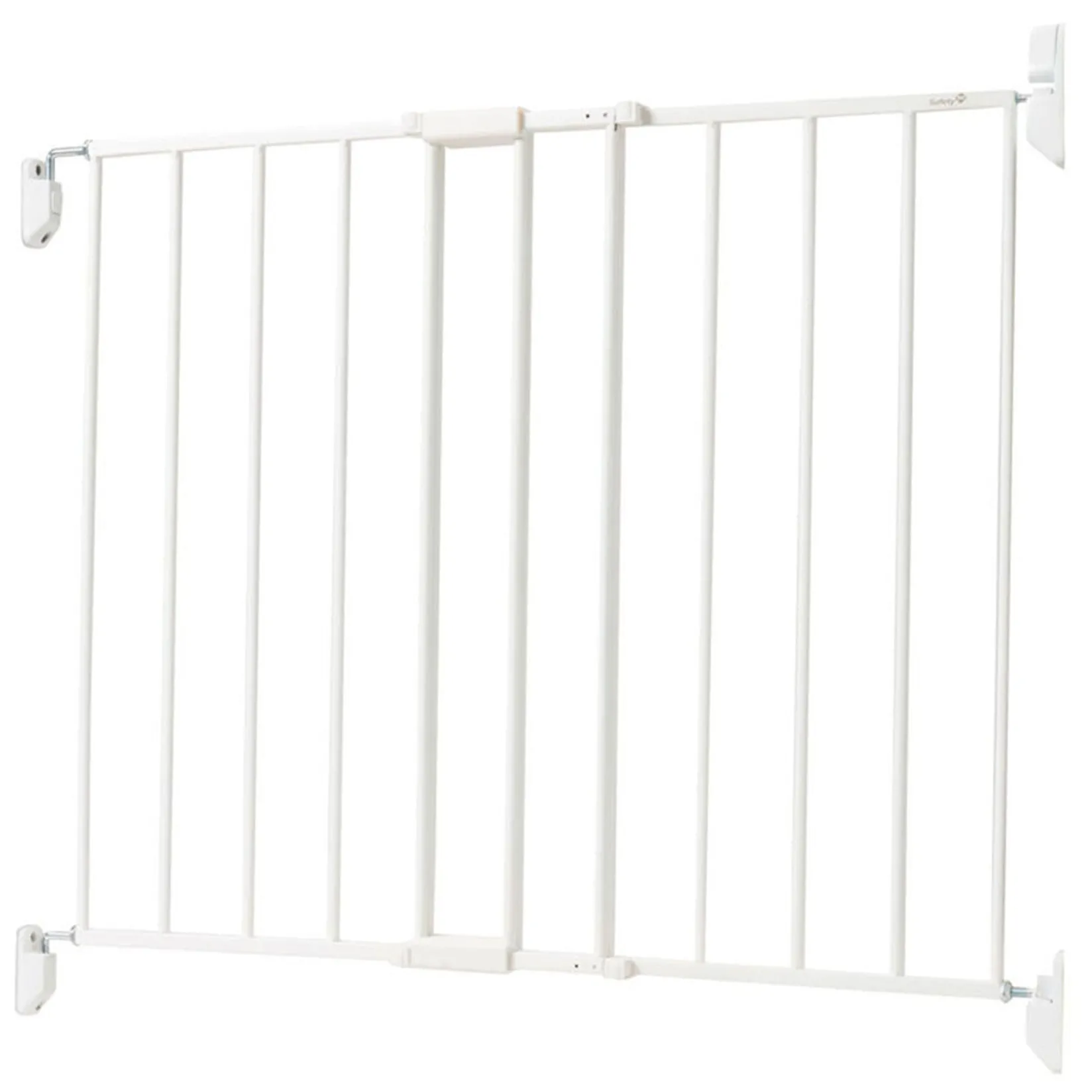 Keep your curious cruiser inside child-friendly areas with the Safety 1st Top of Stairs Metal Gate. This metal baby gate complements your home while keeping baby safely inside, or out of, certain areas. As a hardware-mounted gate, this gate is ideal for use at top of stairs, but can also be used at the bottom of stairs and between rooms for maximum versatility. The frameless design ensures that the walkway is completely clear when the gate is open and there is nothing to step over, preventing any potential trip hazards.