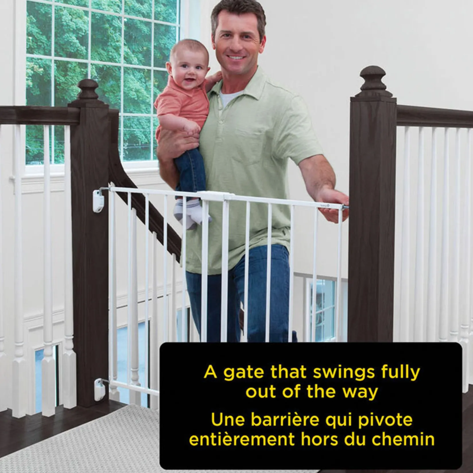 -Hardware mount for maximum security at top of stairs