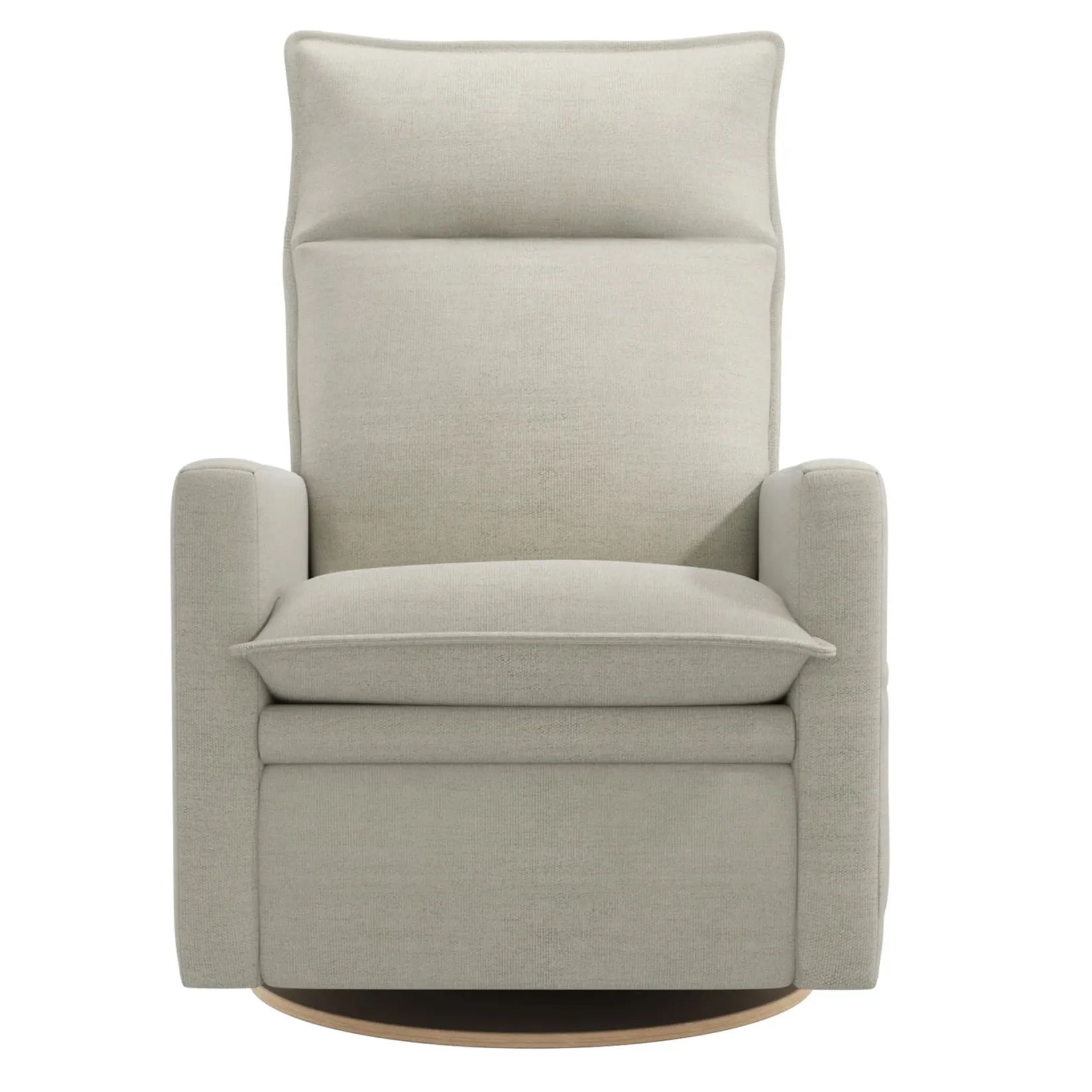 The new Arya reclining chair brings an elegant, relaxed, and comfortable style to baby’s rooms. Its plush cushions allow you to sink into the chair and find the perfect position for ultimate relaxation.The recliner swivels with a smooth rocking motion, so you won’t disturb your little one’s sleep while settling in comfortably.