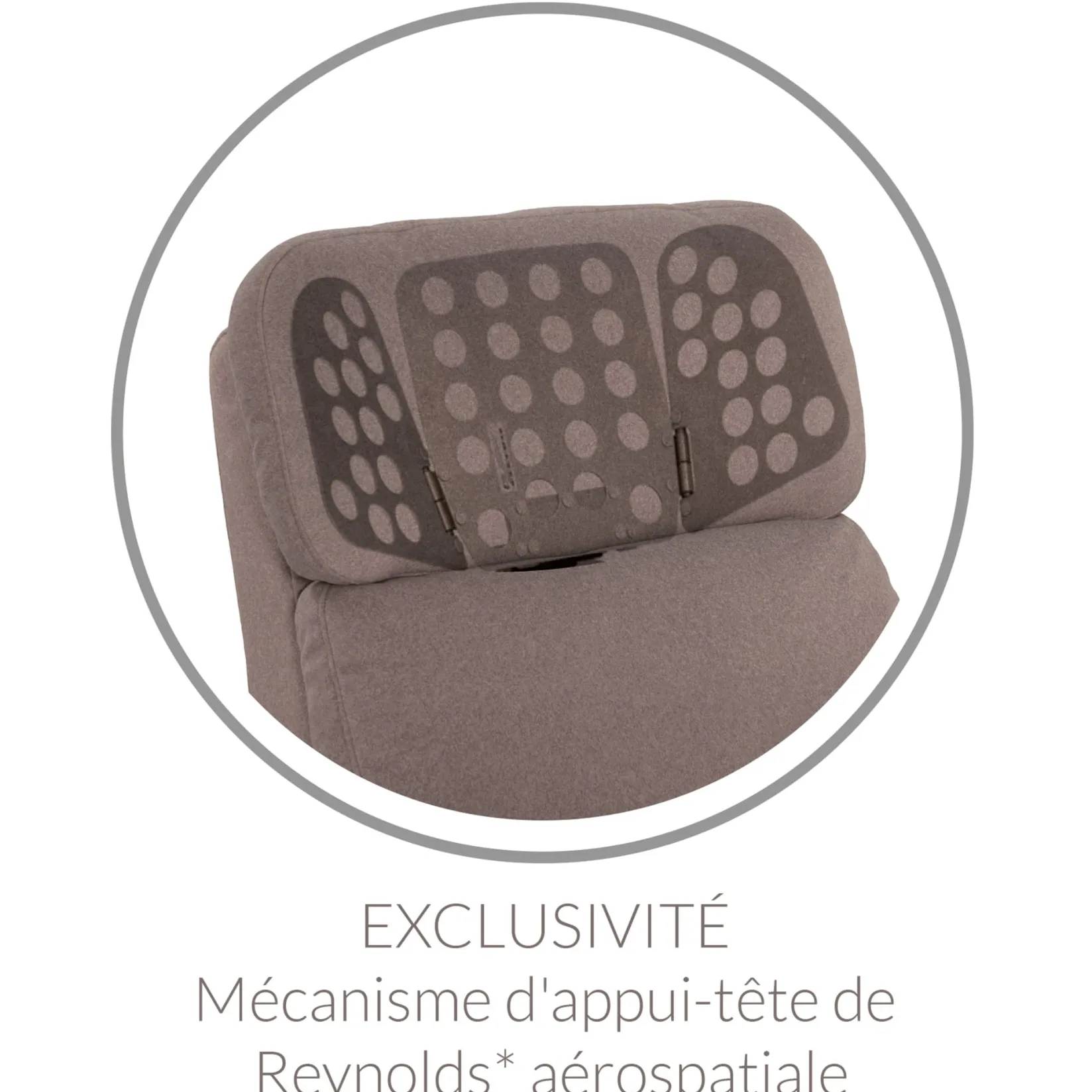 The new Hailey recliner with an adjustable winged headrest offers a unique enveloping design that provides a sense of security and optimal comfort, perfect for long nights or moments of relaxation. This headrest, inspired by the aeronautical industry, is designed to offer personalized comfort with its adjustable height, adapting to the specific needs of each parent. Its foldable or collapsible side wings provide additional support by keeping the head in a stable and ergonomic position, preventing it from tilting to the sides—particularly useful during sleep or prolonged rest periods.