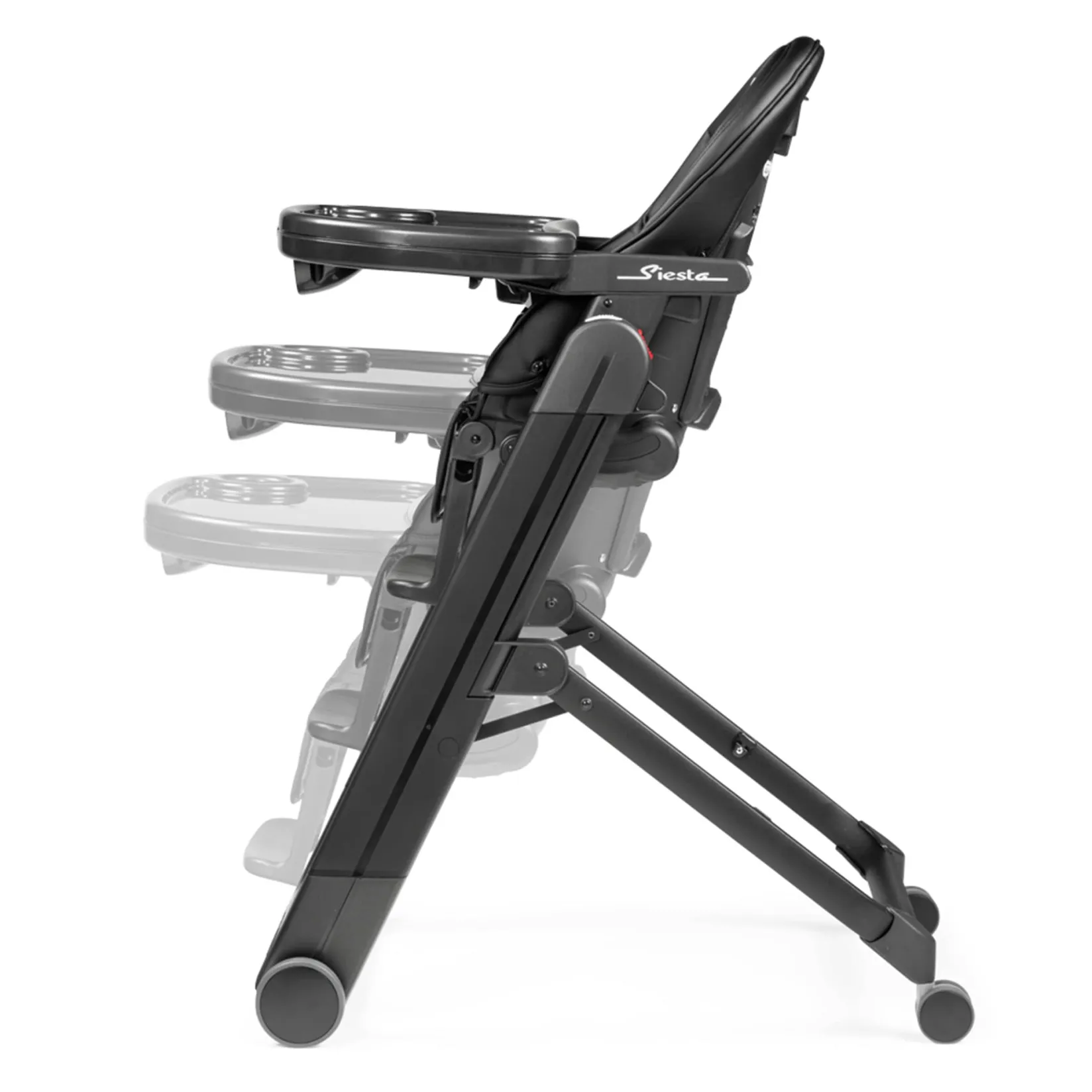 -Removable child tray that easily and quickly withdrawing and inserting with one hand and can be stowed on the rear part of the chassis. It also includes a tray liner, which is dishwasher safe