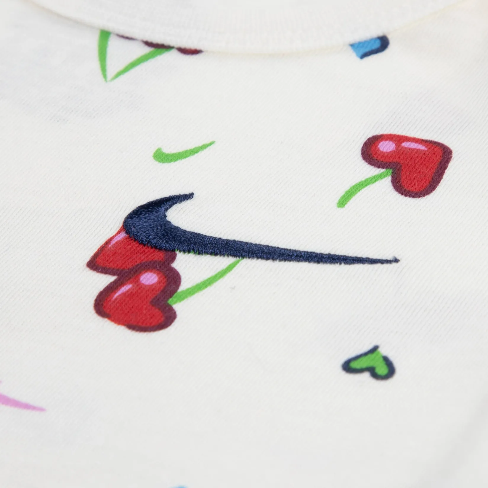 Effortlessly dress your littlest one in sweet style with this coordinated two-piece Nike set. The bodysuit is made of soft fabric, with lapped shoulders and snappy tape closures on the crotch to make changing and dressing easy. The leggings have a stretchy waistband for a comfy fit and flared legs baby can kick and wiggle in.