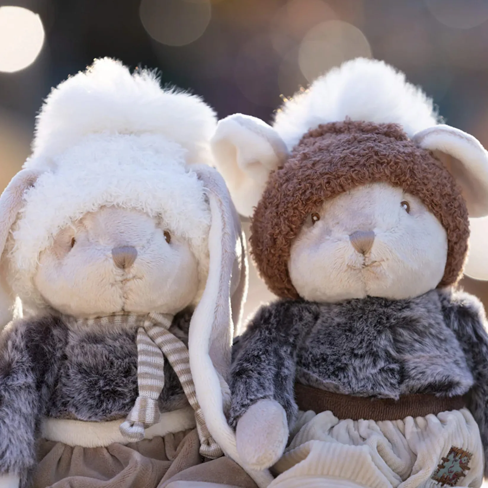 Dressed to impress, Deen is one of our must-have rabbits. His long pants, fuzzy sweater, and pom pom hat will not only keep him toasty during the winter months, but also his lucky companion. He loves to snuggle up near the fireplace and drink hot coco.Â