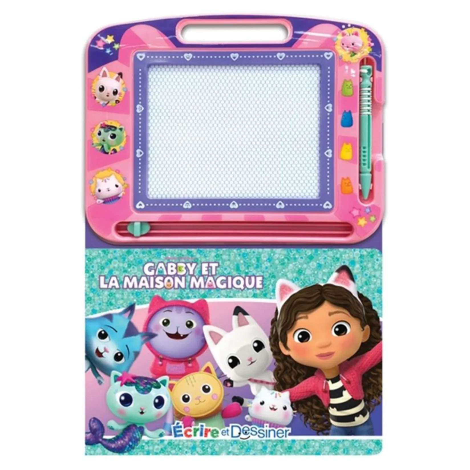 Includes an illustrated book measuring 15.5 cm x 22 cm with 11 easy step-by-step drawings, a plastic erasable drawing module, and a magnetic pen. The covers are hardcover and the pieces are not detachable, making it the perfect entertainment to take anywhere you go!