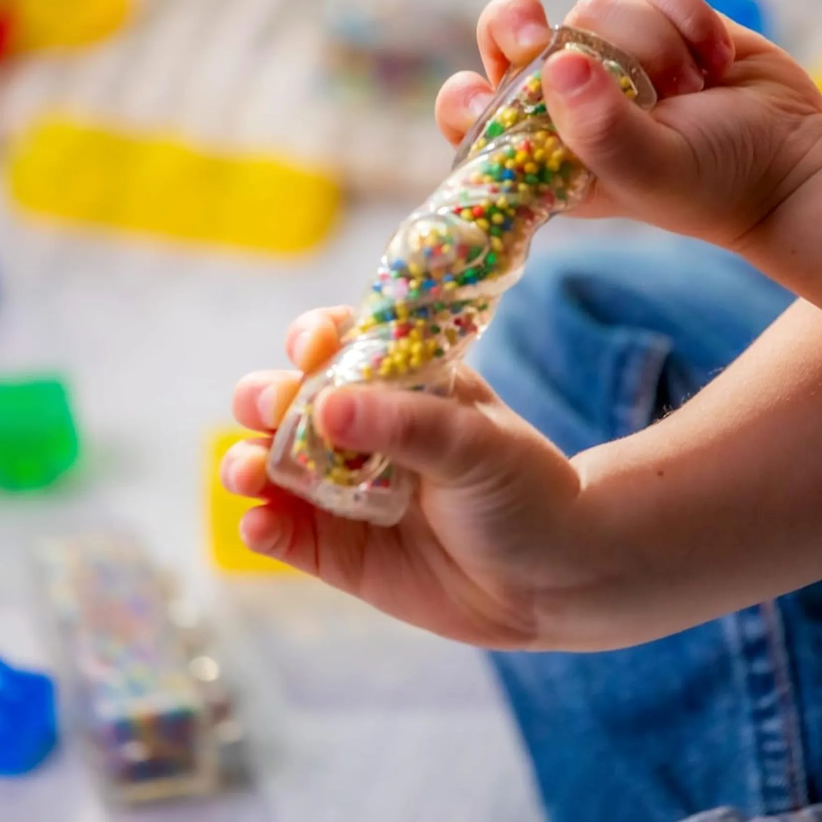 Plus, some blocks are filled with exciting materials like sand, foam balls, mini stars, and mini bricks for added sensory fun!