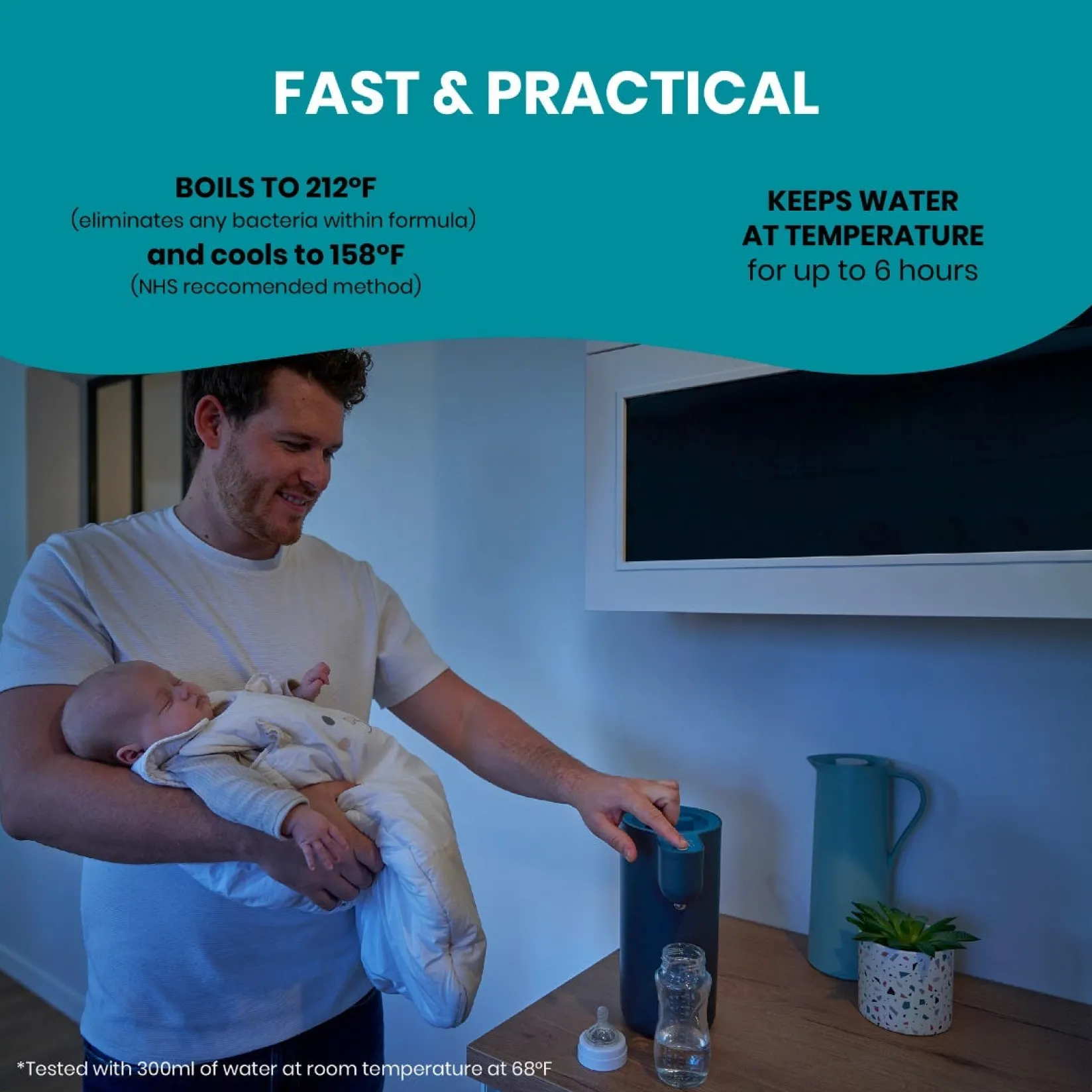 -Ensures water used for baby bottles is 100% clean and bacteria-free by pre-boiling