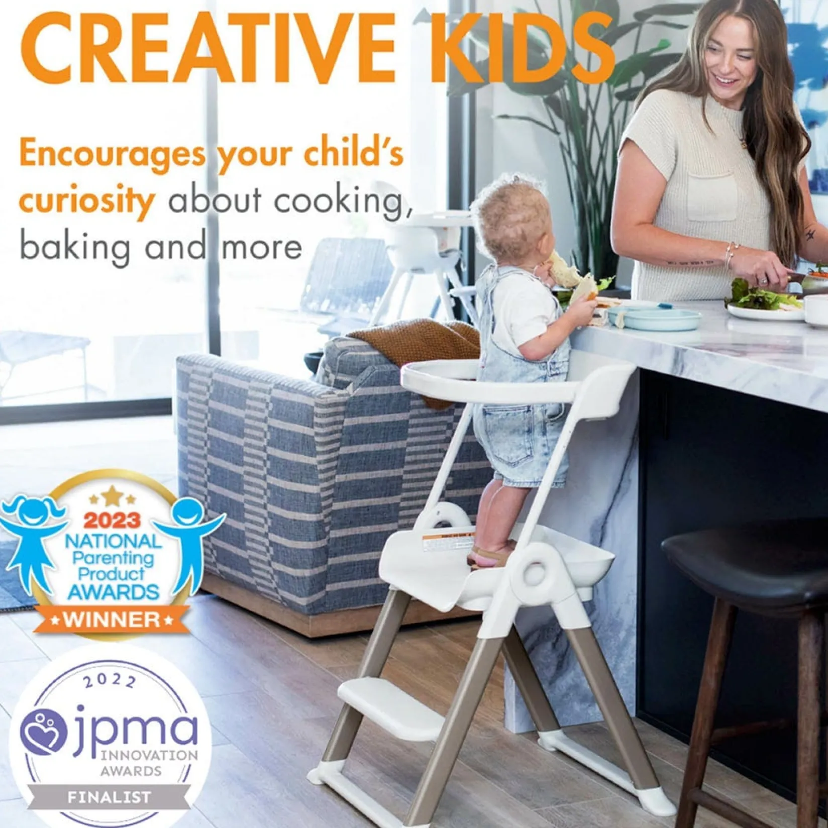 -Creative Kids: This sturdy toddler tower turns your kitchen counter into a learning center where you can encourage your child’s curiosity about cooking, baking and more