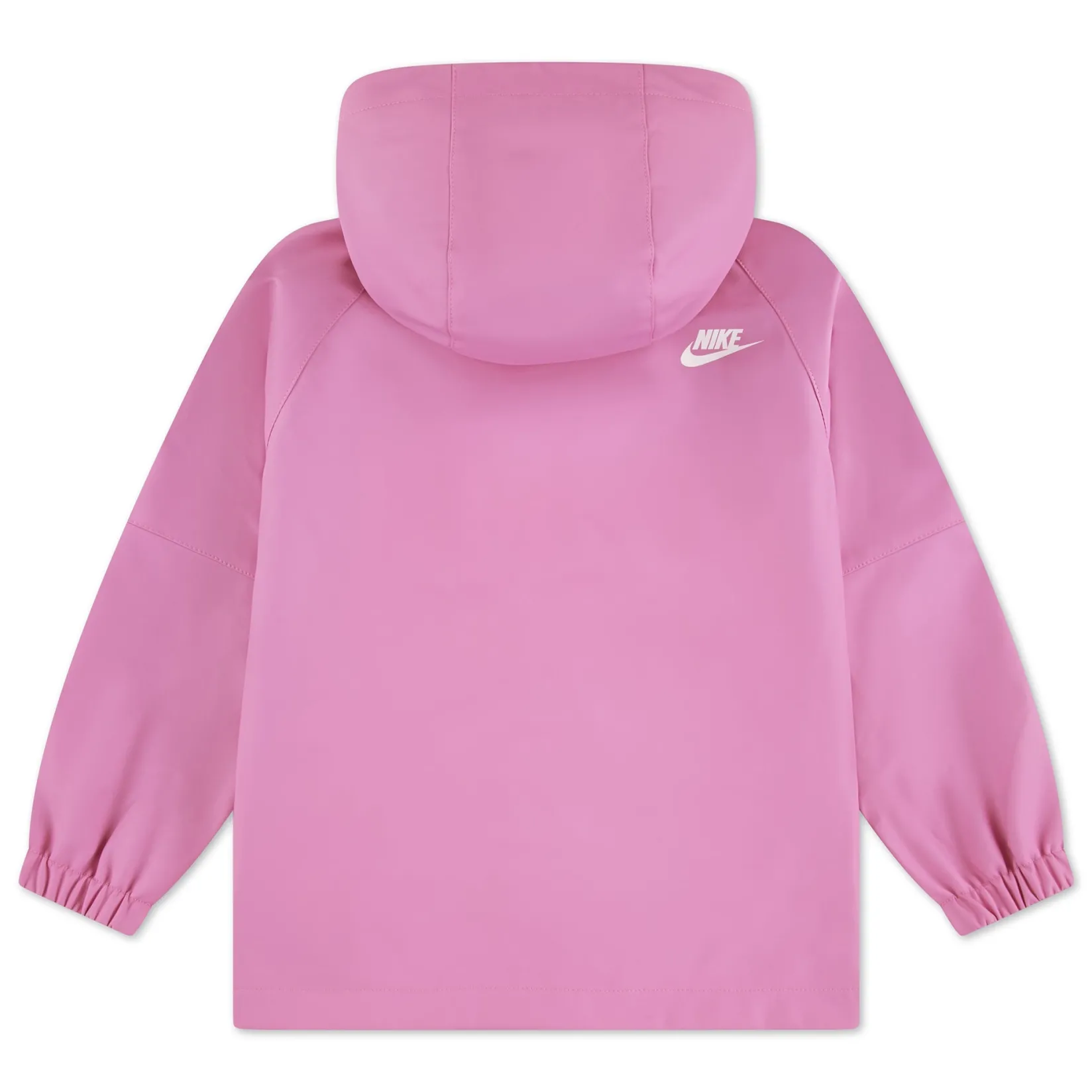 A little rain won’t stop little ones from going out to play so why not send them in something that will keep them warm, cozy and most importantly, dry while they’re out? This Nike jacket, made of smooth poly fabric bonded with a breathable, water repellent membrane to help keep kids dry in light rains, has a full-zip closure with a snap placket overlay to help keep the cold and rain out and keep warmth in. Elasticized cuffs help secure the fit, the upper body and hood are lined with soft fleece for extra warmth and snap-closure pockets help secure small items, making this jacket a fall essential.
