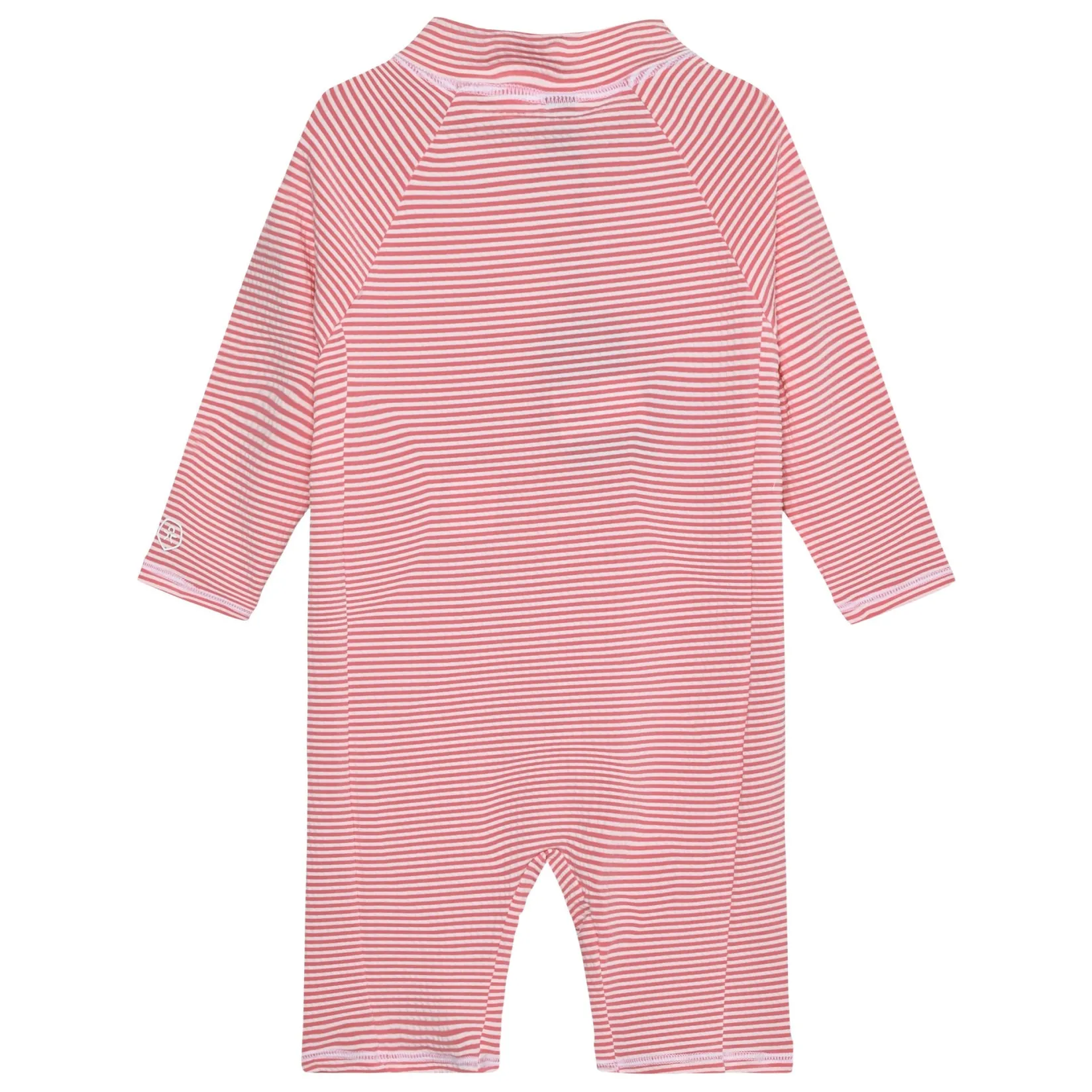 OEKO-TEX® STANDARD 100 Cert. No. 2276-364 DTI, Tested to UV STANDARD 801 UPF 60+ Swimsuit with long sleeves and a striped pattern from Color Kids. The swimsuit has a front zipper and is both flexible and comfortable. Certified acc. to OEKO-TEX® STANDARD 100 Cert. No. 2276-364 DTI Tested and certified acc. to UPF 60+. To determine the UPF rating, the fabric is tested in both new and used conditions, following the UV STANDARD 801 method. The entire product is then CE-certified under PPE regulations.