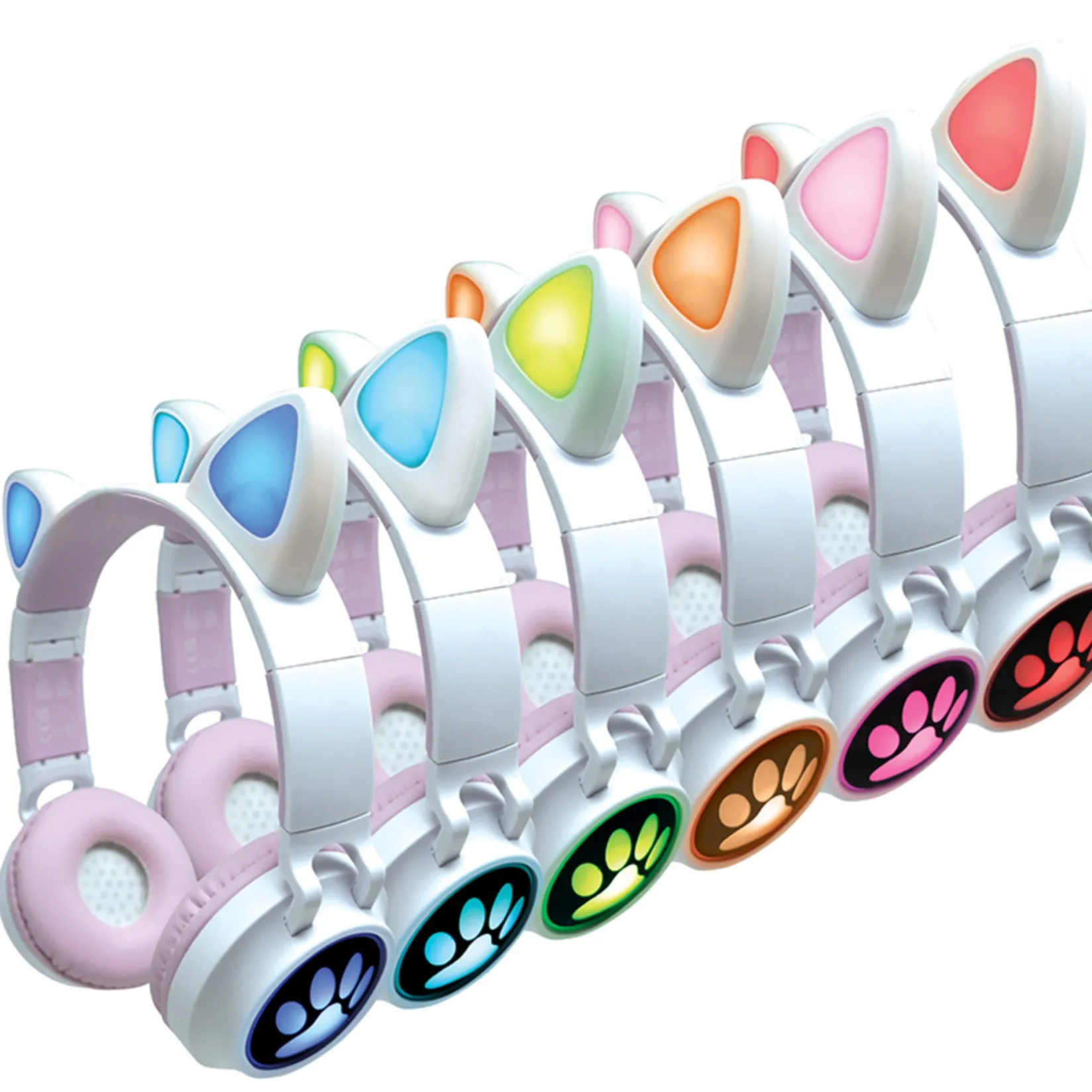 Enjoy your music wirelessly with Bluetooth 5.0 or use the detachable auxiliary cable for a wired connection. The adorable design with cat ears and illuminated sides creates a playful vibe, while the built-in microphone, play/pause buttons, and volume control make it easy to manage music and answer calls. With versatile connectivity, a rechargeable battery providing hours of playback, sturdy foldable construction, and a comfortable fit for all head sizes, these headphones are the ideal companion for endless listening—at school, while traveling, or anywhere you go. Compatible with a wide range of devices, they combine style, practicality, and comfort for a personalized music experience.