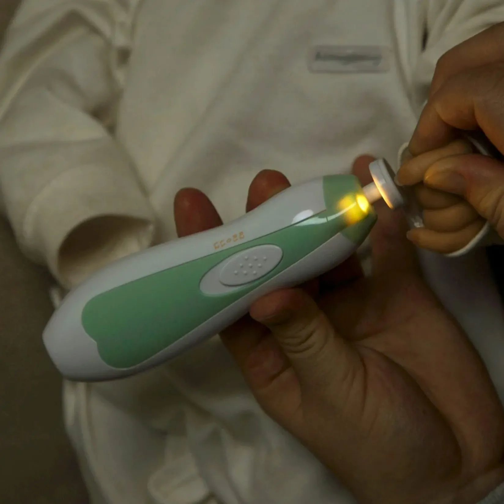 Our Baby Nail Care Set has two rotation directions and speeds to suit your needs. It’s whisper-quiet and features a light on the end for easy nighttime filing!