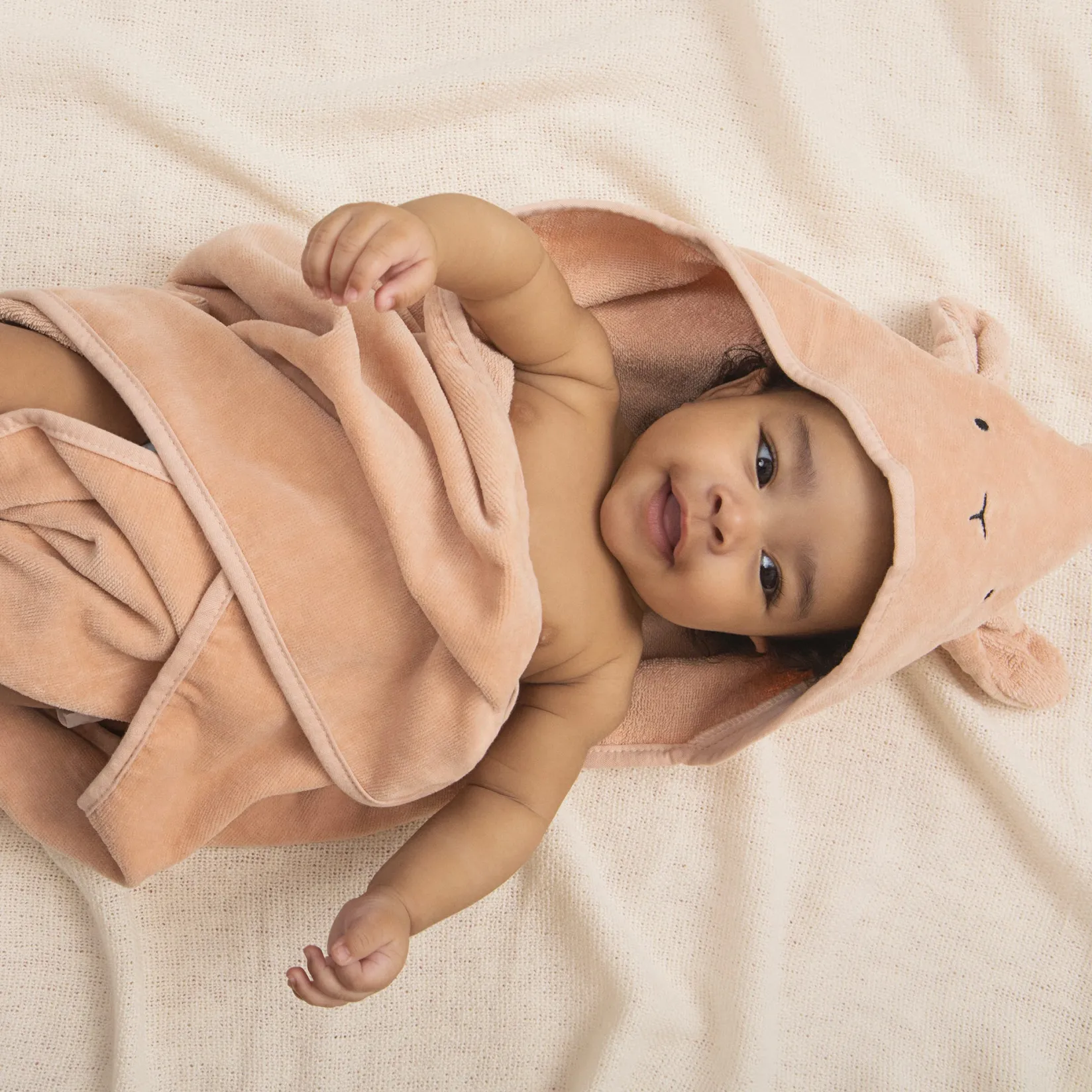This fun bath set includes a hooded towel decorated with bunny ears and three matching washcloths.