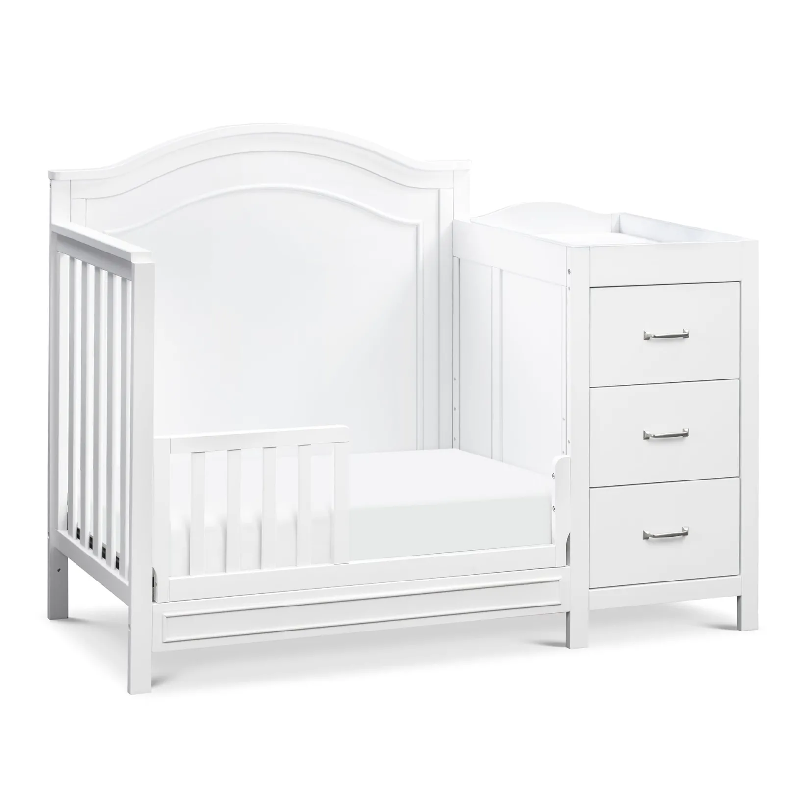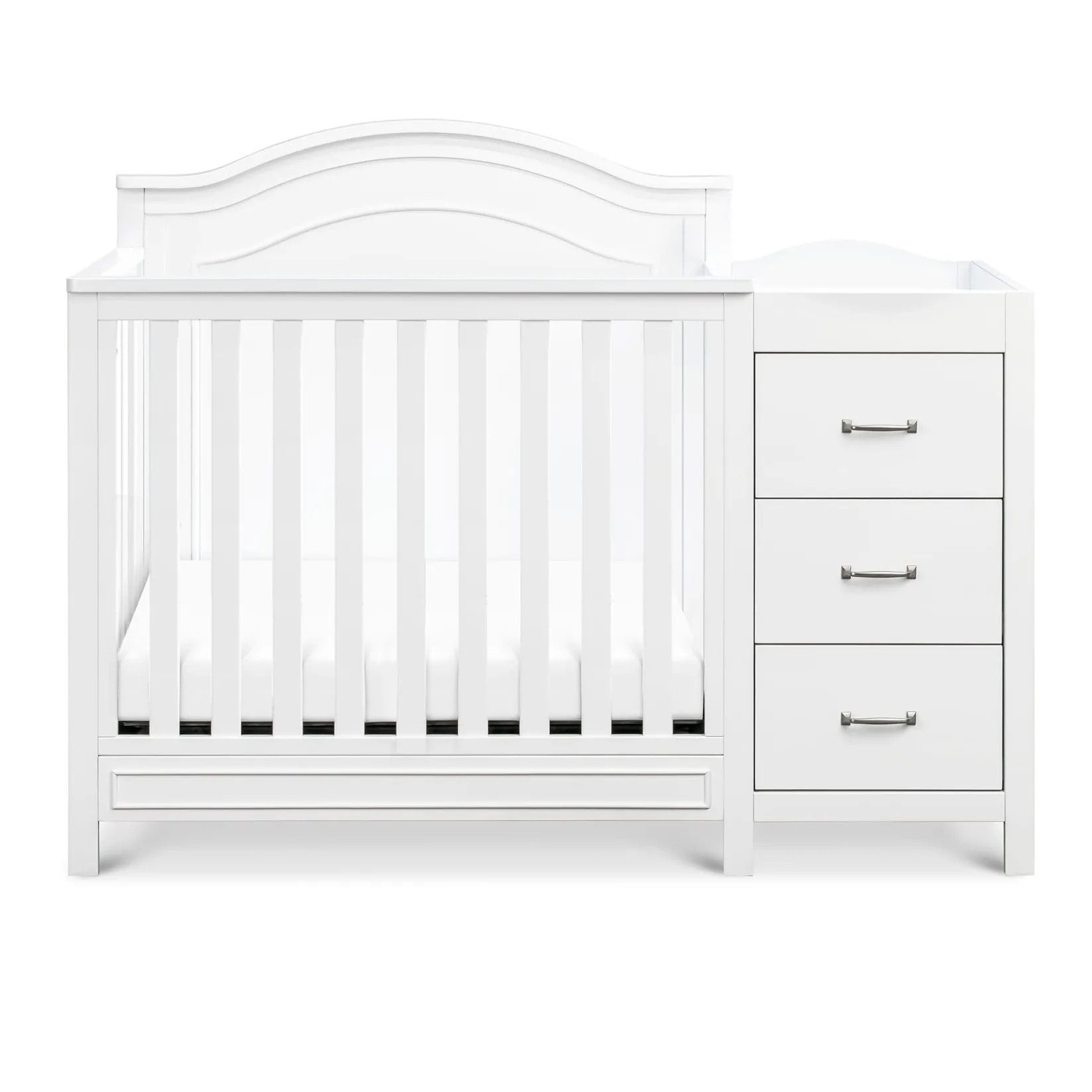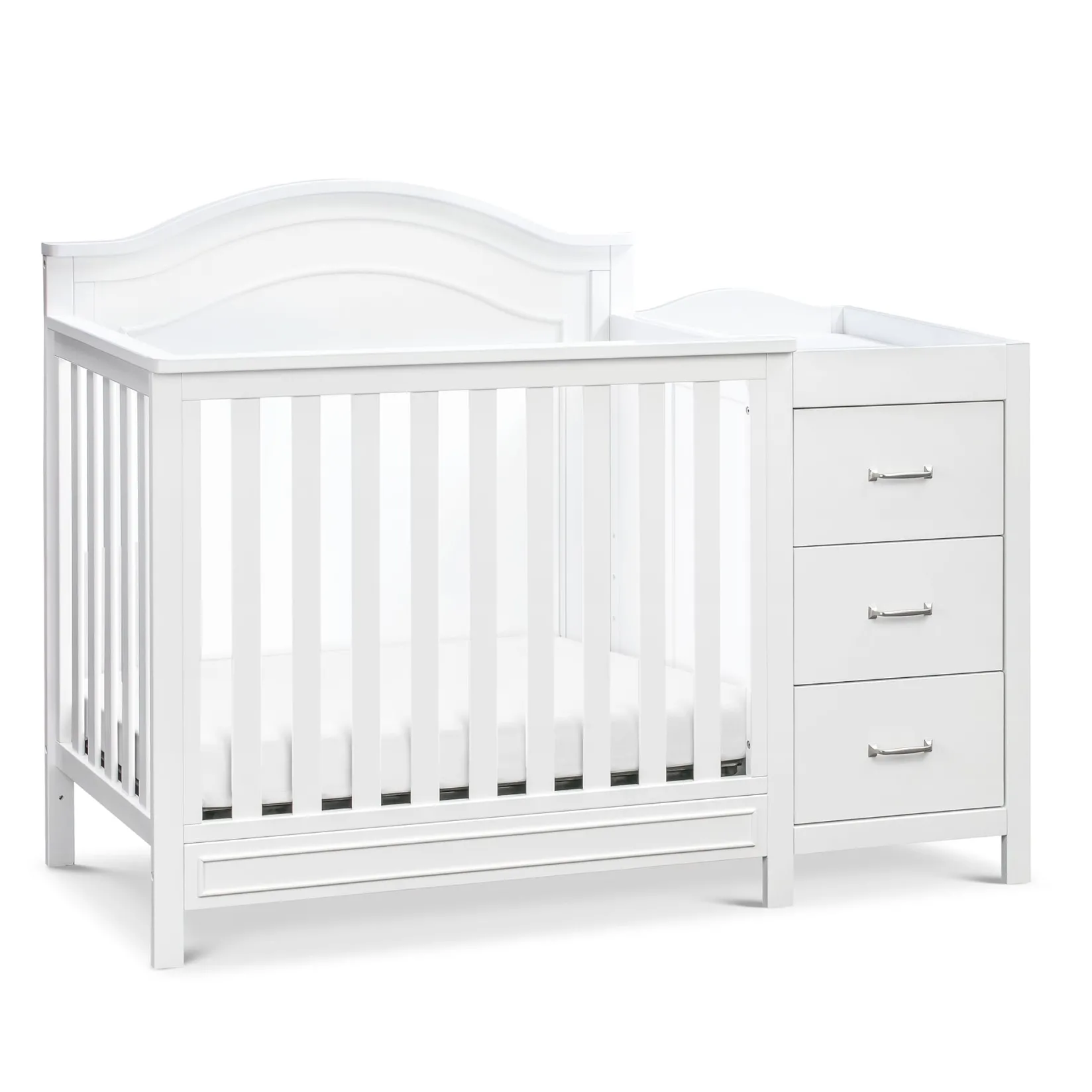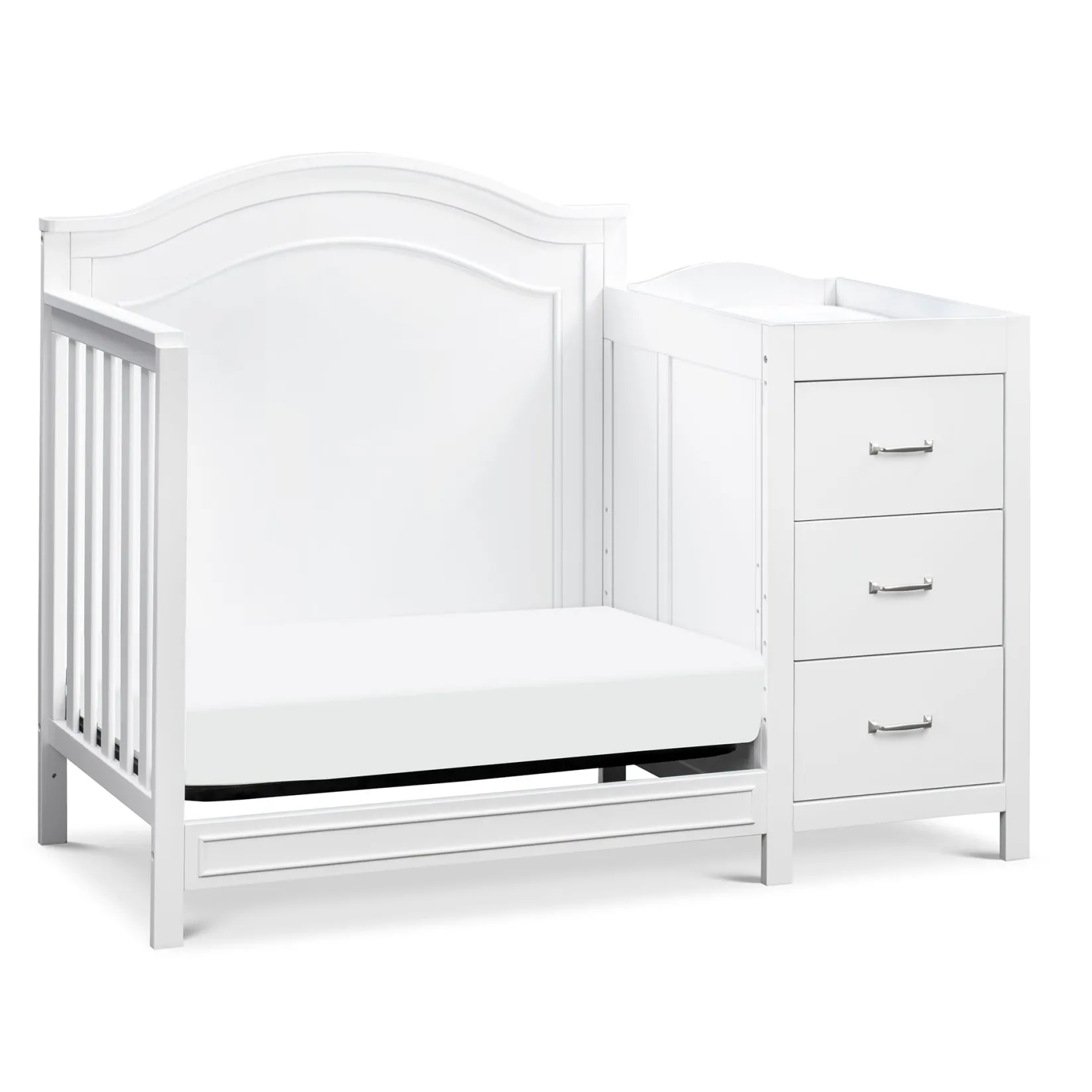 The Charlie 4-in-1 Convertible Mini Crib & Changer is a beautiful, comprehensive solution for any stylish nursery. Its compact size helps maximize smaller spaces, so that your baby has more room to play and grow! Beyond the nursery years, this crib converts to a mini toddler bed, day bed, and twin-size bed.
