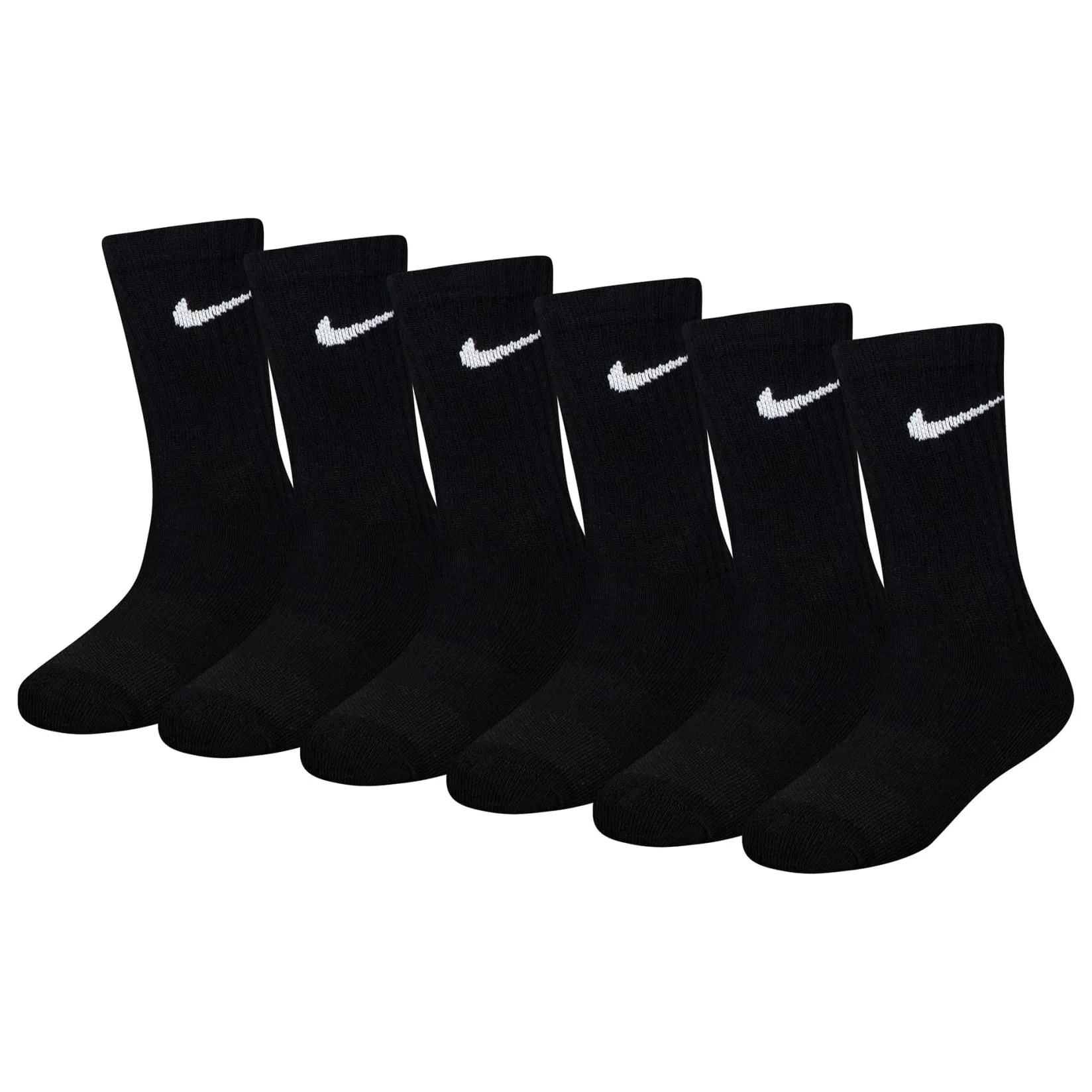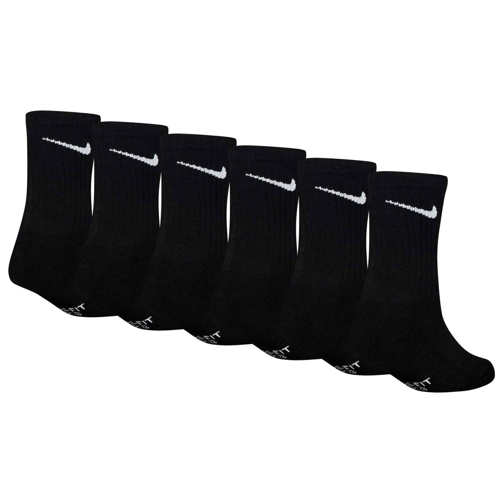 Caractéristiques :Cotton/poly blend in a flat knit construction. Jacquard Swoosh logo detailing on the ribbed cuffs. Moisture-wicking Dri-FIT technology. Breathable mesh upper. Ribbed arch support band. Half cushioned toe/heel/bottom. Includes 6 pairs of crew socks.