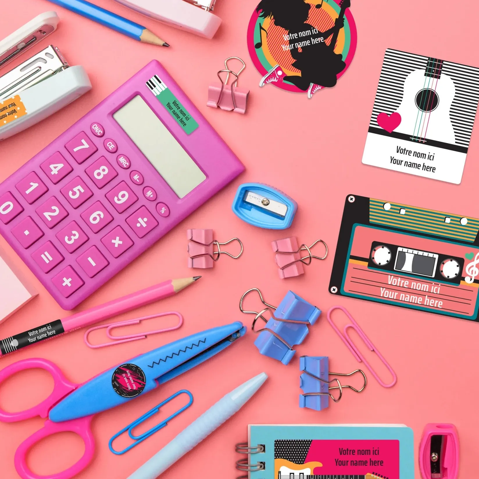 The set of personalized sticky labels Clément becomes your best ally for the quick identification of your family’s personal items. In a few seconds, young and old will be able to recognize their school items, lunchbox items, sports equipment, shoes, clothes, etc. Waterproof and durable, the labels are not afraid of freezing, water, heat, or steam. They are resistant to the microwave, refrigerator, freezer, dishwasher, washing machine, and dryer.