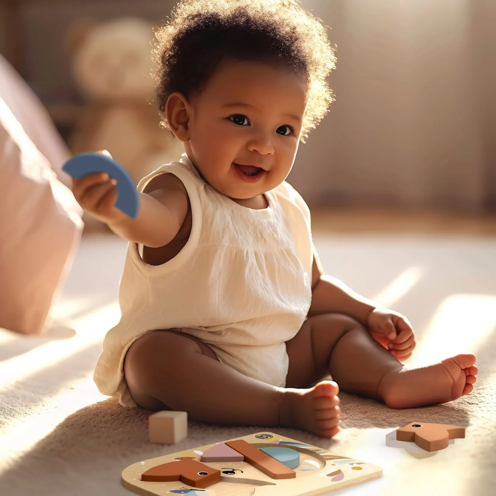 Spark early learning and fine motor development with the adorable Fox Puzzle! Featuring 6 wooden block pieces, this colorful puzzle is designed for curious toddlers aged 12 months and up. The simple shapes and vibrant design help little ones develop hand-eye coordination, shape recognition, and problem-solving skills, all through hands-on play.