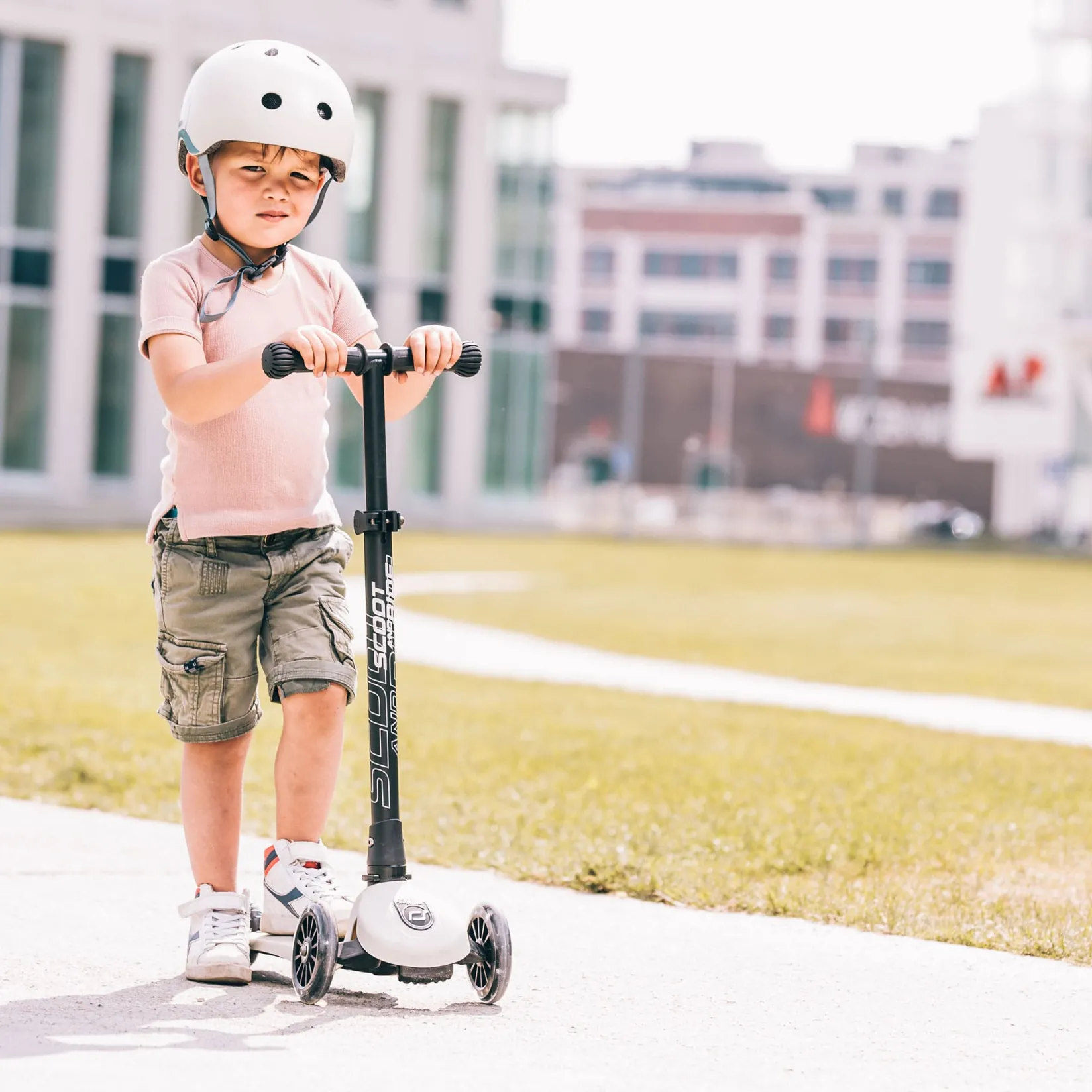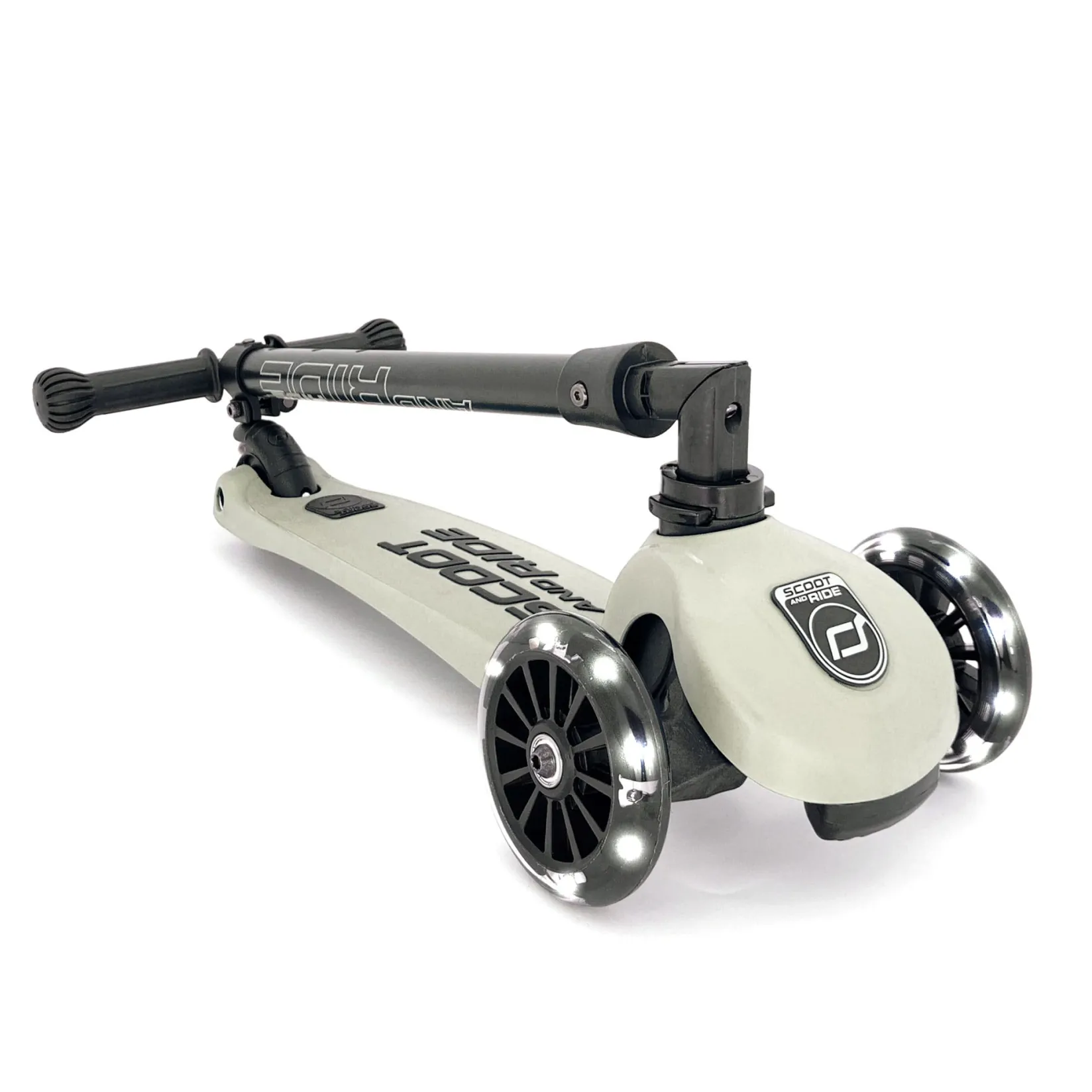 The Highwaykick 3 features 3 LED wheels and a three-height adjustable handlebar that folds easily for convenient transport (no tools required).