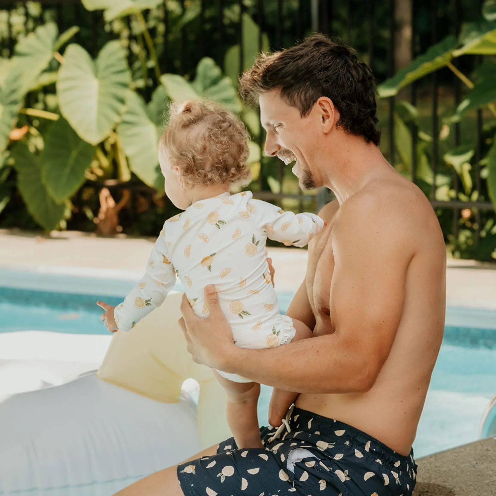 This refreshing summer staple features our zesty Lemons print and is designed to keep your little girl comfy, covered and confident through every wiggle and wave. The long-sleeved one-piece is perfect for those with delicate skin and with built-in UPF50+ sun protection, she’s safe in the sun’s hottest rays and the ocean’s saltiest waters. The front zipper makes the piece super easy to remove after a day of splashing while the weft knitted material is lightweight and quick-drying – so she can dip in and out till her heart’s content.