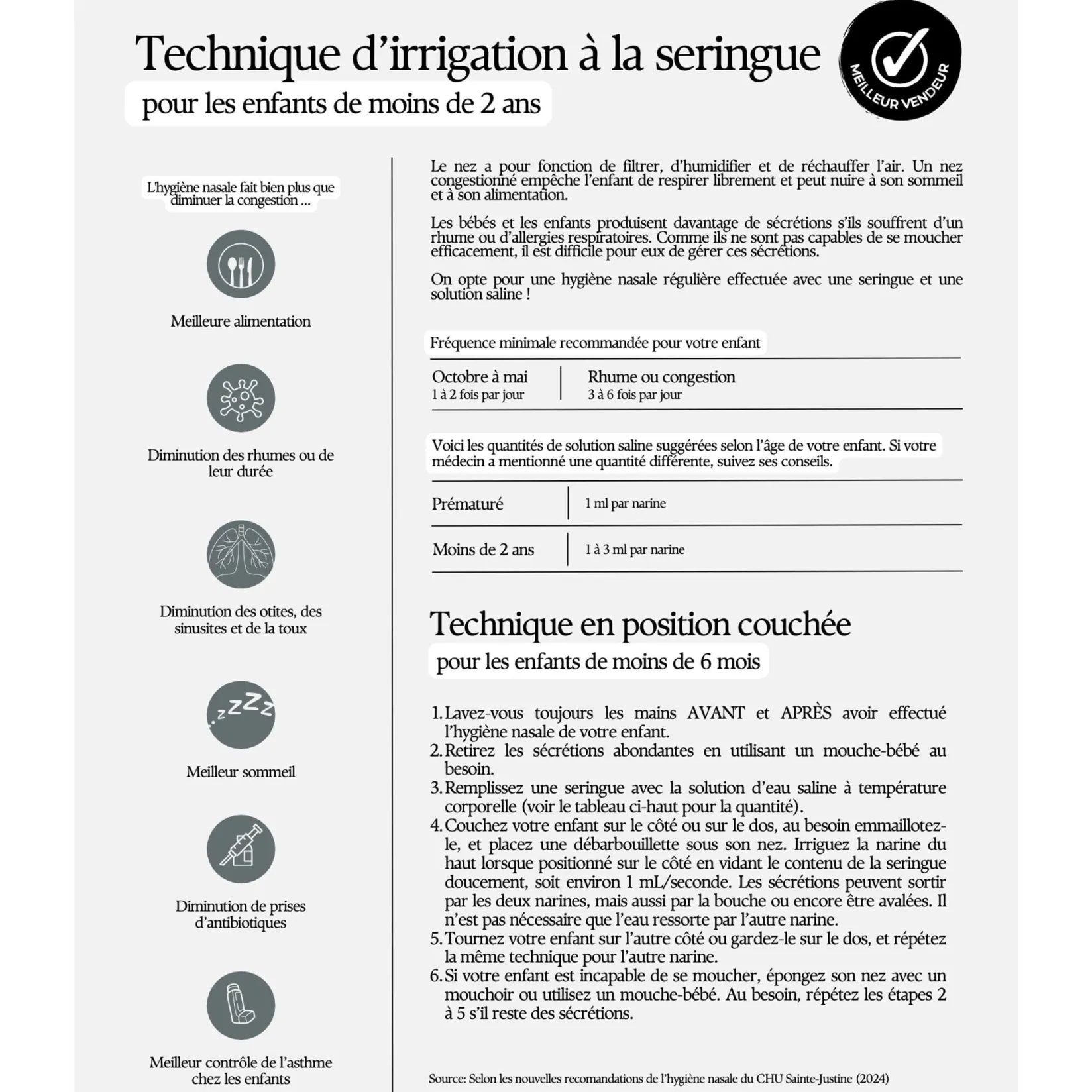 “The nose serves to filter, humidify, and warm the air. However, this ‘filter’ must be clean to be effective! A congested nose indeed hinders a child from breathing freely and can adversely affect their sleep and nutrition.