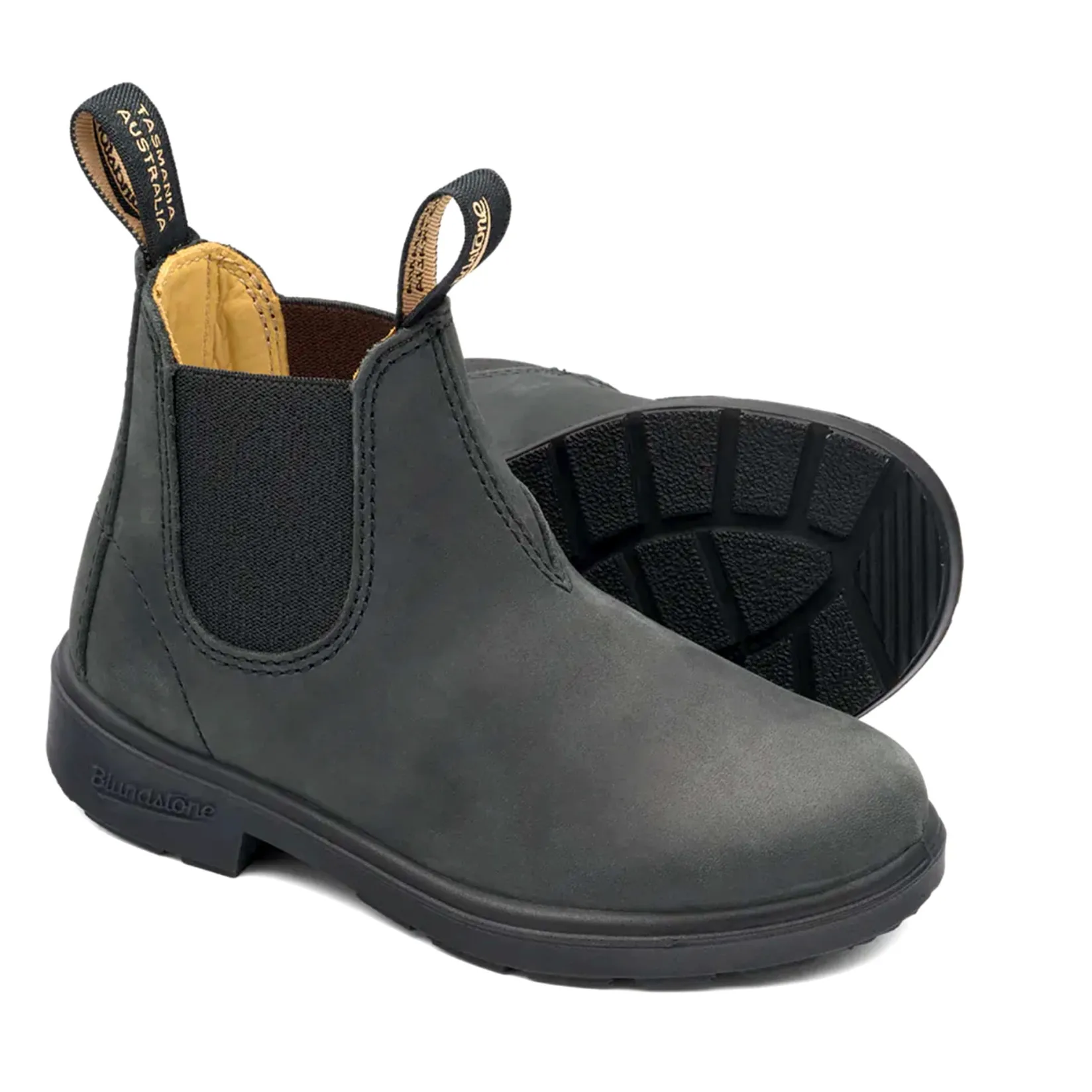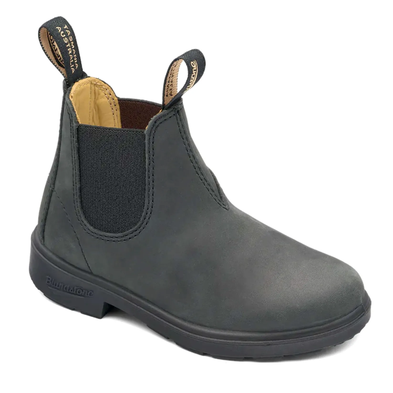 Blundstone 1325 Kids boots in Rustic Black, a laid-back black leather ready for the playground and classroom.