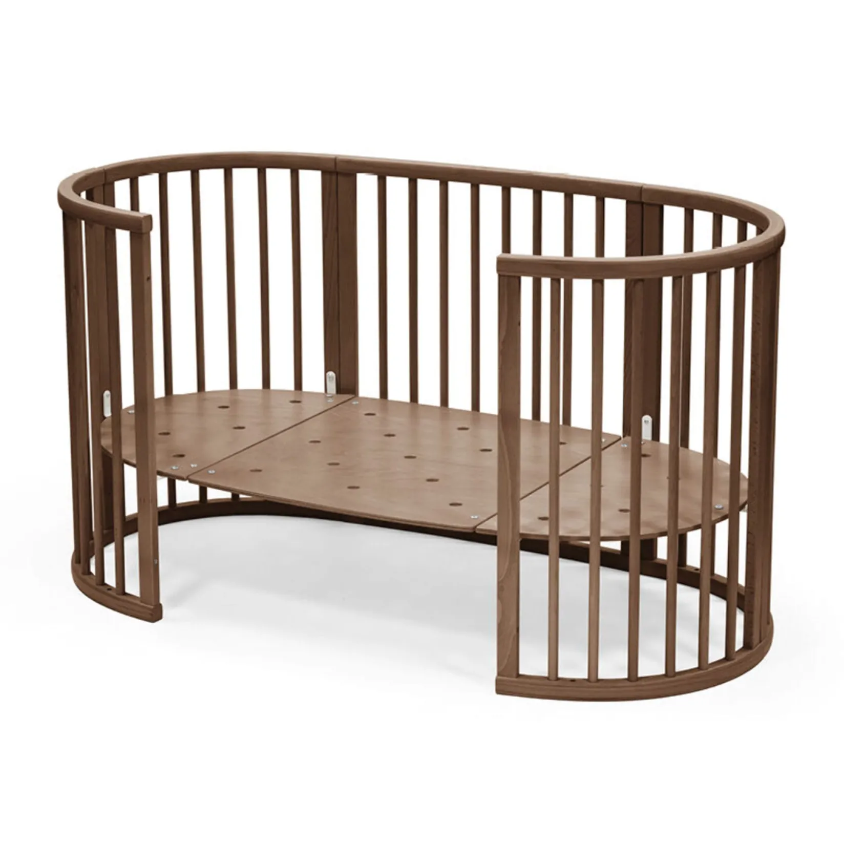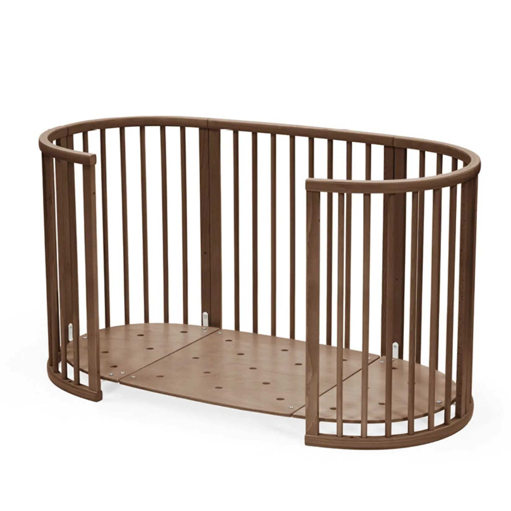 The soft oval design cocoons your baby, offering comfort and familiarity for restful sleep. Stokke® Sleepi™ Bed can be used from birth to 5 years so your child can enjoy their bed throughout childhood. Adjust the mattress height as your child grows and reaches the curious climbing stage. Once your child is old enough to get in and out independently, you can remove the wheels and one side of the bed for easy access, boosting their confidence. The Stokke® Sleepi™ concept is developed with sound sleep and safety in mind. It is compatible with the new firm, breathable Sleepi™ mattress that exceeds the highest safety standards (sold separately). Accessorize with the breathable mesh liner and high-quality textiles. Please note that the Sleepi™ Bed cannot be downsized into a Sleepi™ Mini.