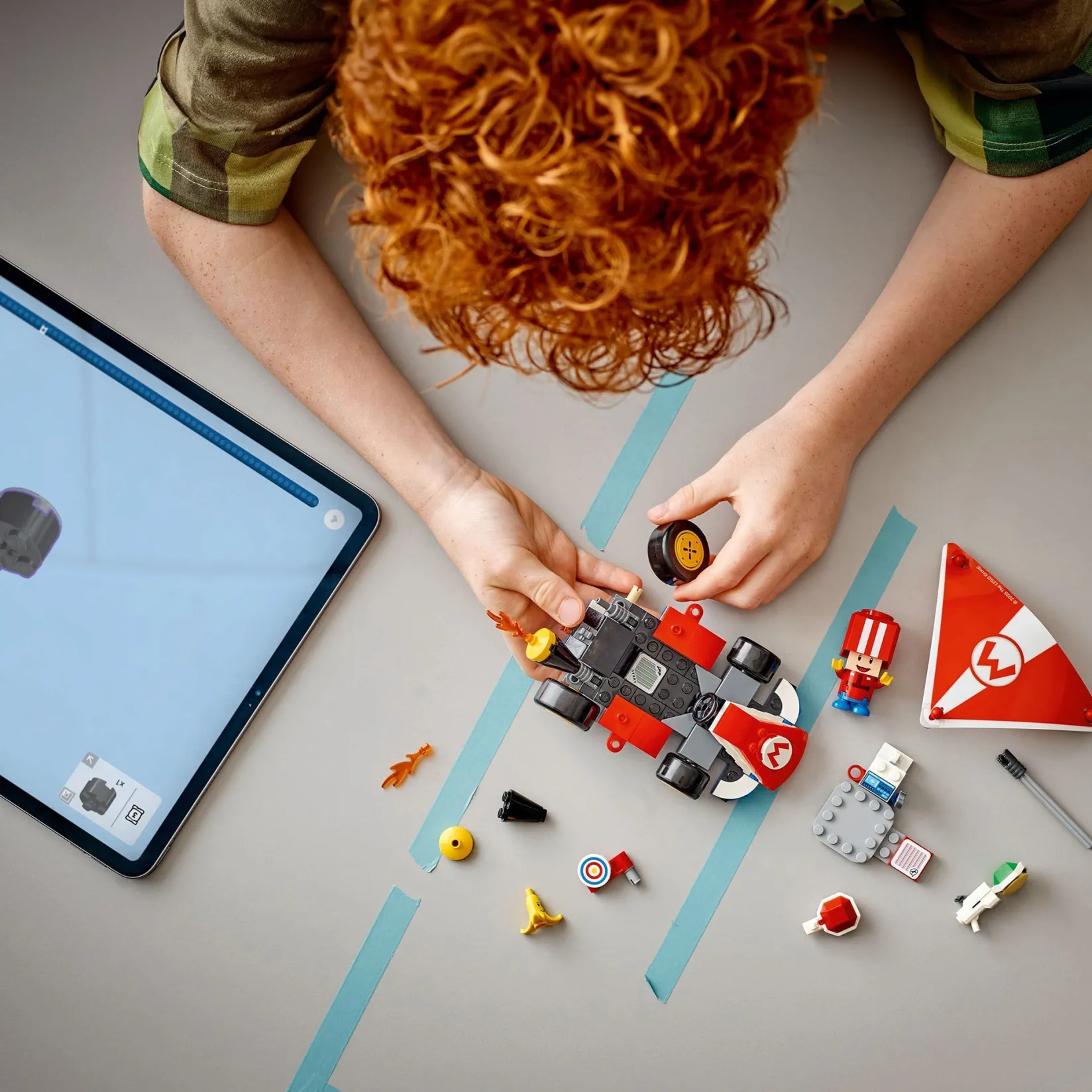 – LEGO® Super Mario™ car playset for brick-built Mario Kart™ adventures