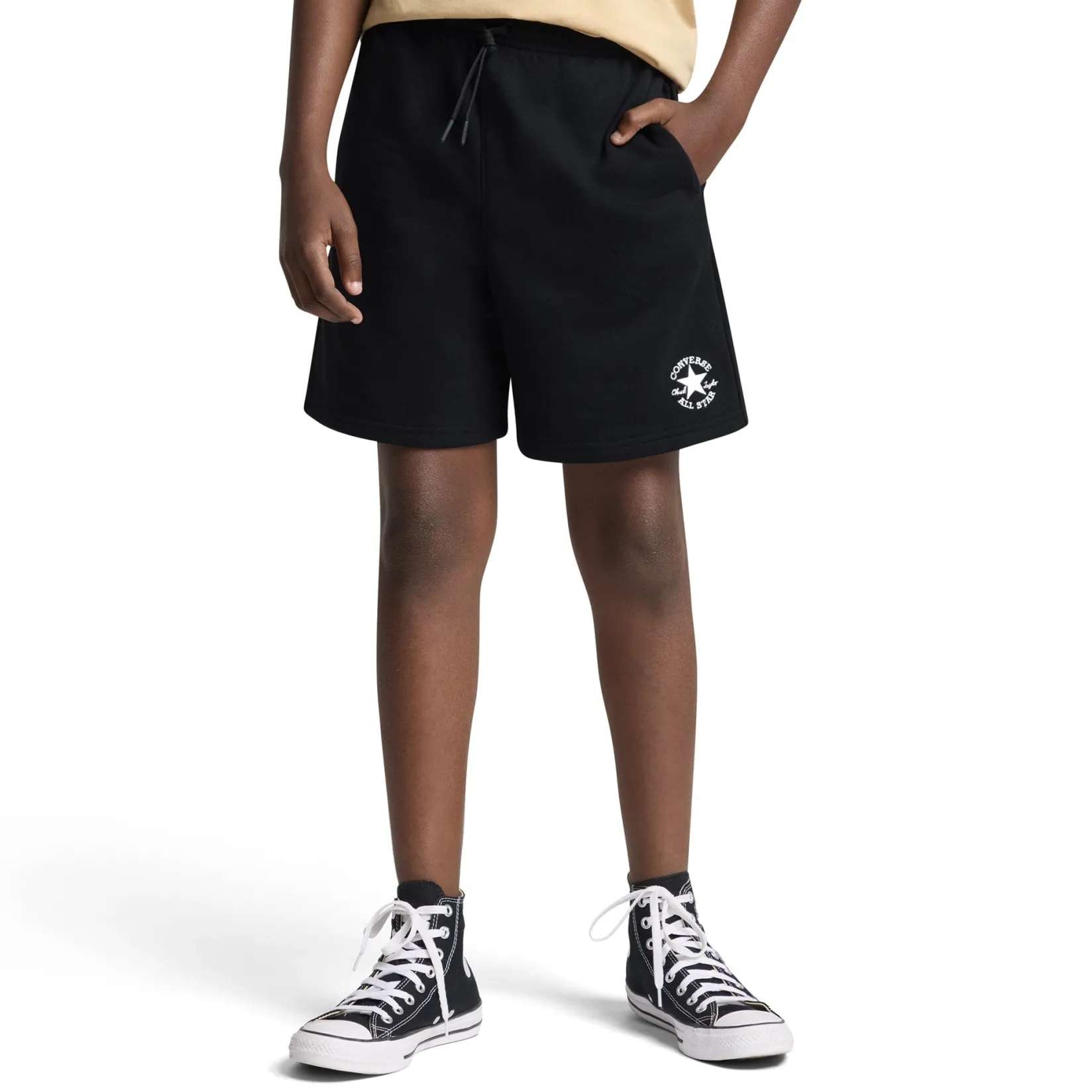 These Converse shorts have a classic design that go with just about any of your tops. They are made of French terry, have a stretchy waistband with a drawcord for a comfy fit, and pockets on the sides and back provide plenty of spots to stash your small essentials.Â