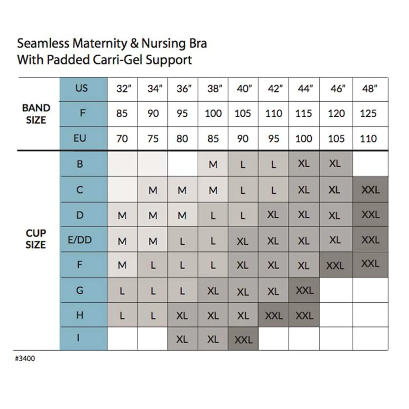 *Please note that Carriwell sizes are smaller than standard sizes. We recommend that you choose a size larger than the size indicated in their size chart. Additionally, 1 or 2 bra extenders is recommended for larger sizes.
