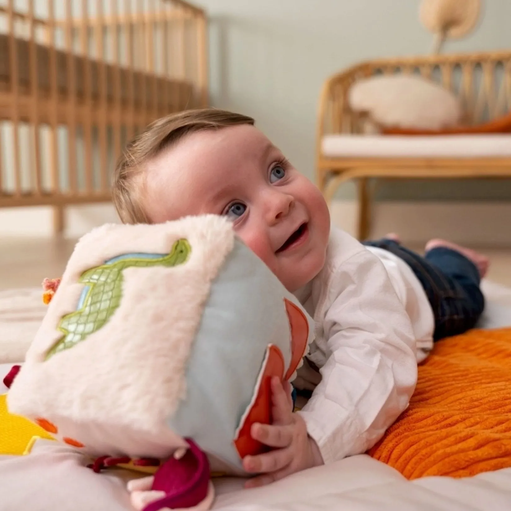 -The Soft Activity Cube encourages hand-eye coordination and motor skills.