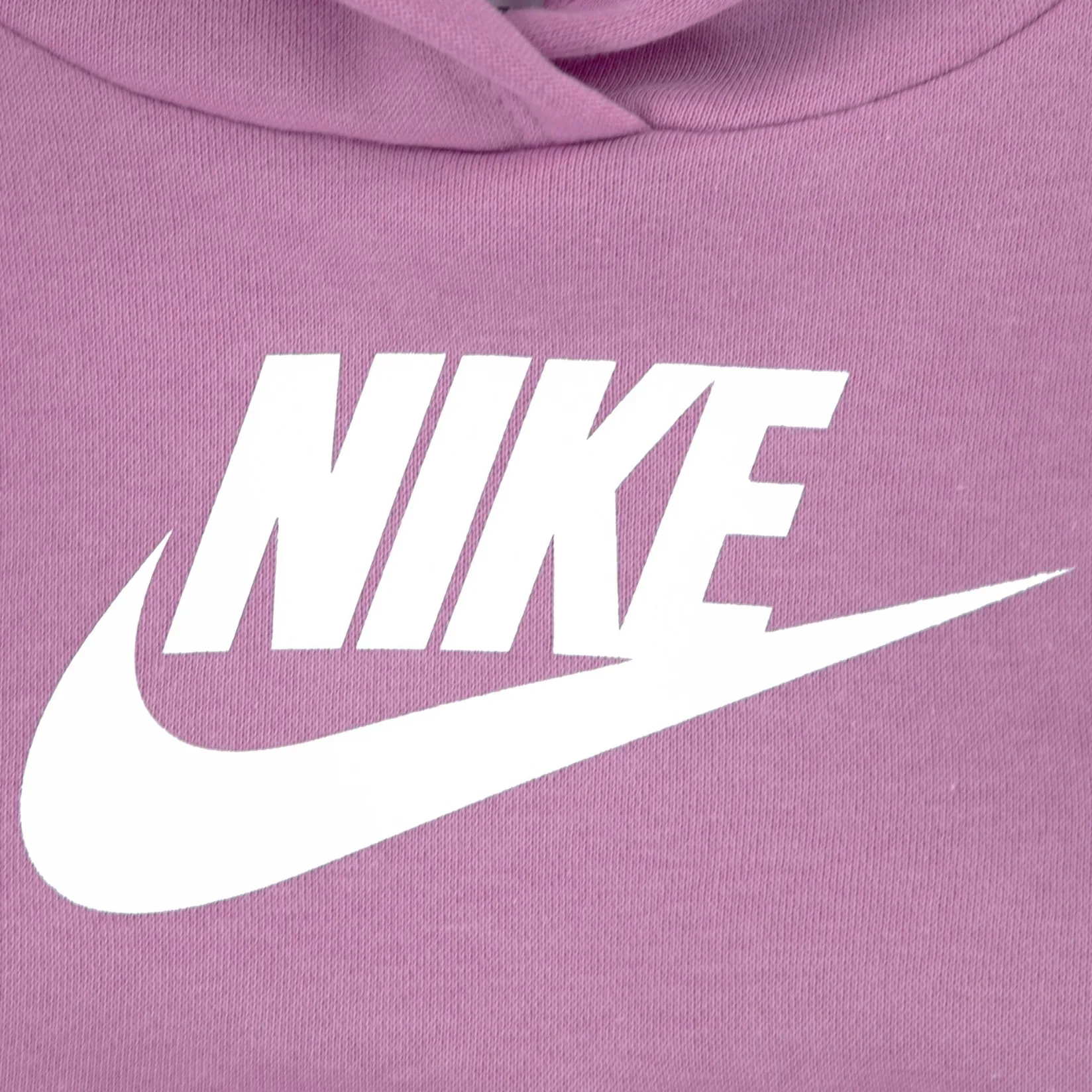 Looking for an easy way to outfit your little one when the weather starts to get a little chilly? This 2-piece Nike set, made of soft cotton/poly fleece fabric, has you both covered. The pullover hoodie is roomy enough to layer over a tee or tank and the matching tapered pants have a stretchy waistband for a comfy fit.Â