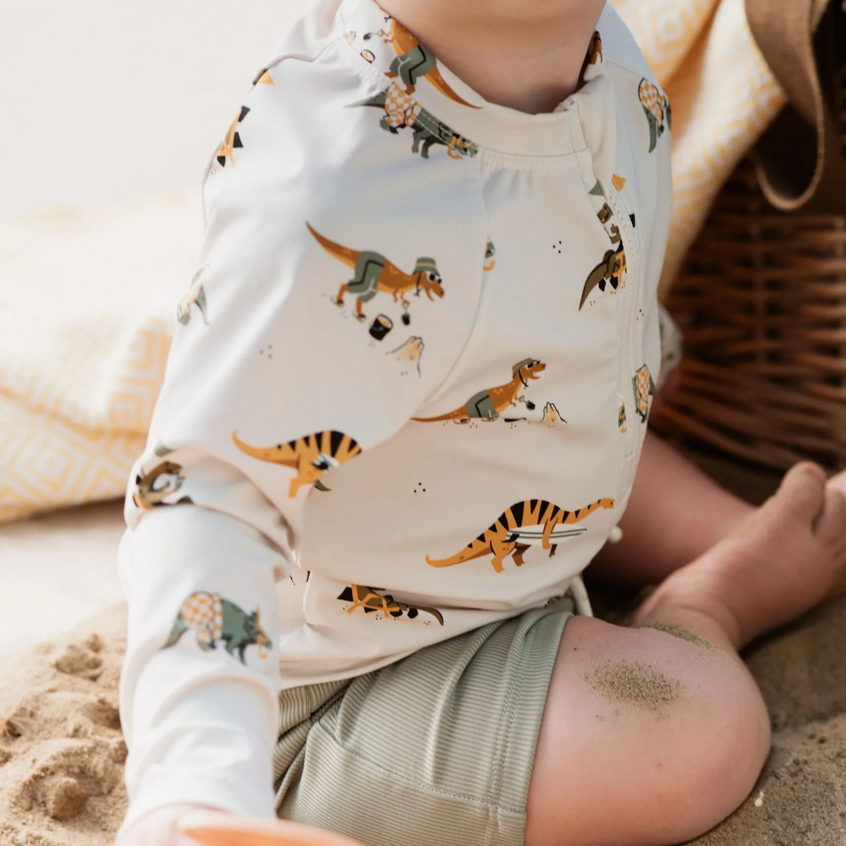Roar into summer fun with your little guy in this dinosaur print rash guard set. Perfect for little explorers, he’ll have the best day when you combine sun safety and his favourite print. The two-piece set is designed with easy-dressing features – such as the half-zip drawstring waistband – and built with quick-drying fabric and UPF50+ sun protection. He’ll enjoy all day comfort and confidence while navigating salty waters, chilly pools or hot sands.