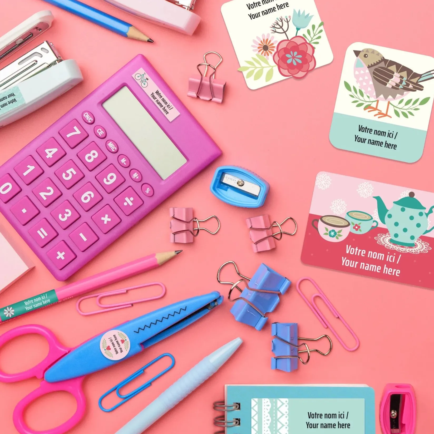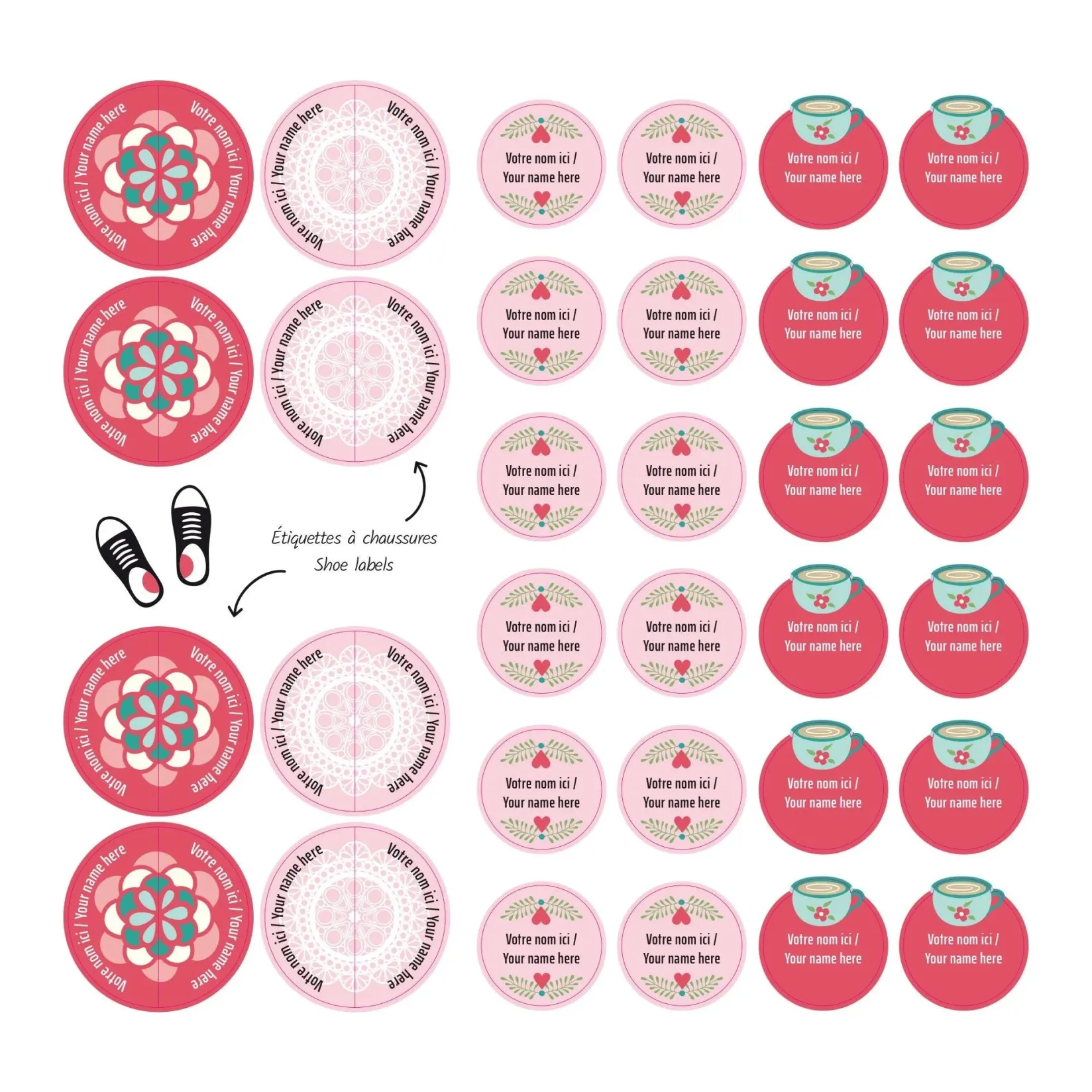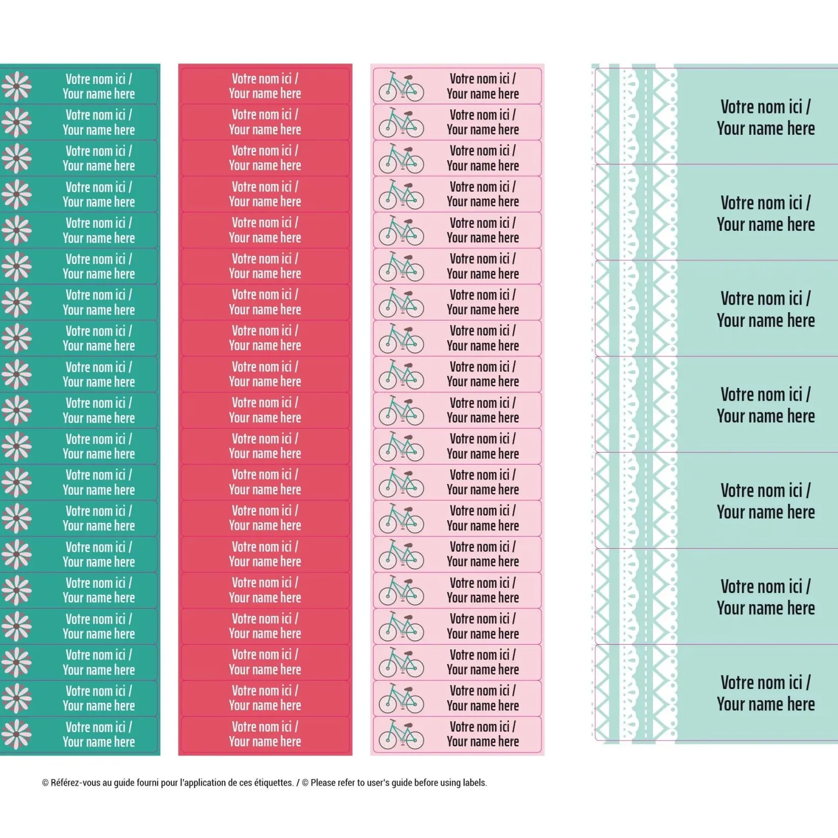 The set of personalized sticky labels Clément becomes your best ally for the quick identification of your family’s personal items. In a few seconds, young and old will be able to recognize their school items, lunchbox items, sports equipment, shoes, clothes, etc. Waterproof and durable, the labels are not afraid of freezing, water, heat, or steam. They are resistant to the microwave, refrigerator, freezer, dishwasher, washing machine, and dryer.