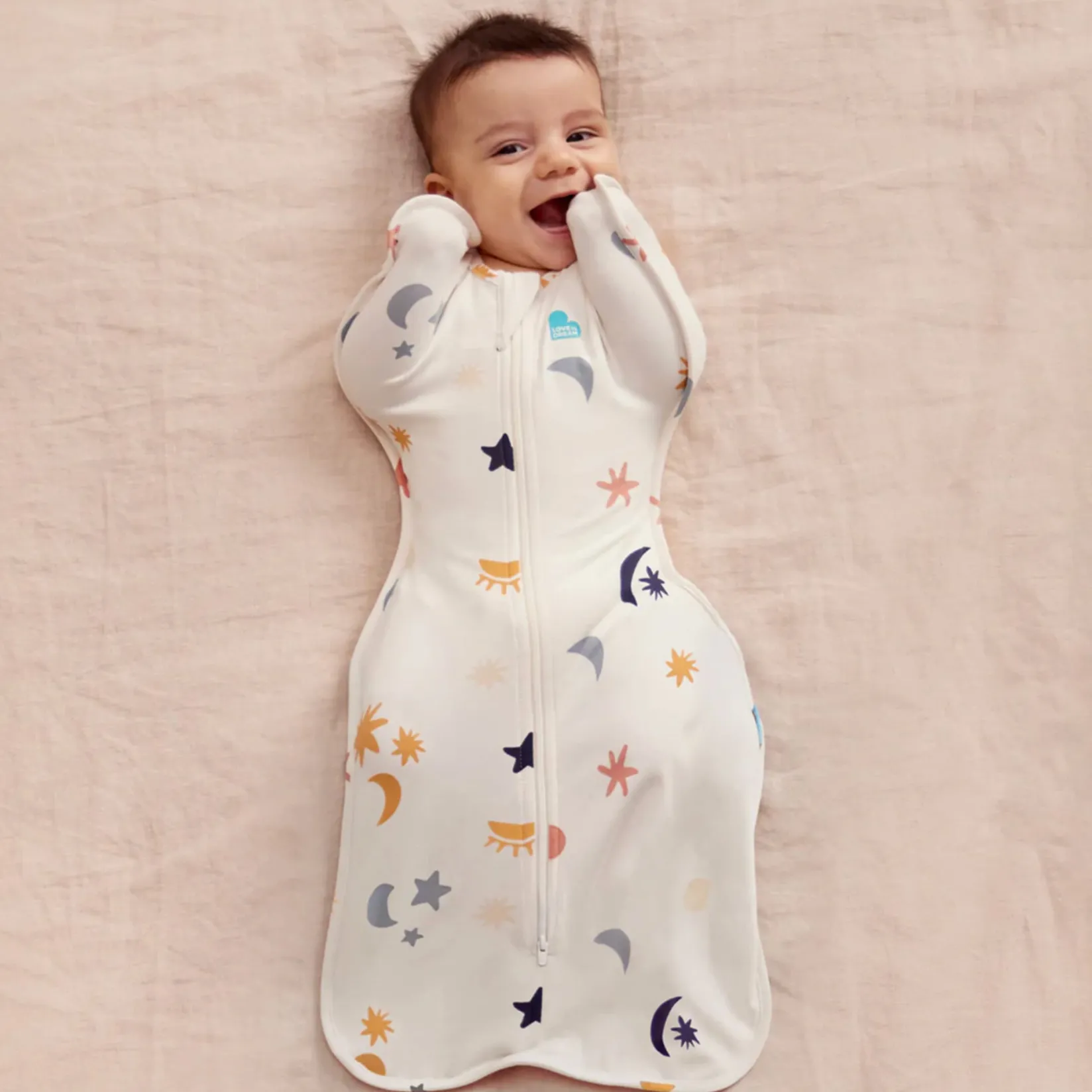 When you place your baby on their back to sleep, their natural position is for their arms to be raised. The Love to Dream Swaddle UP Original features a patented design that allows you to swaddle your baby with their arms raised in this more natural position.