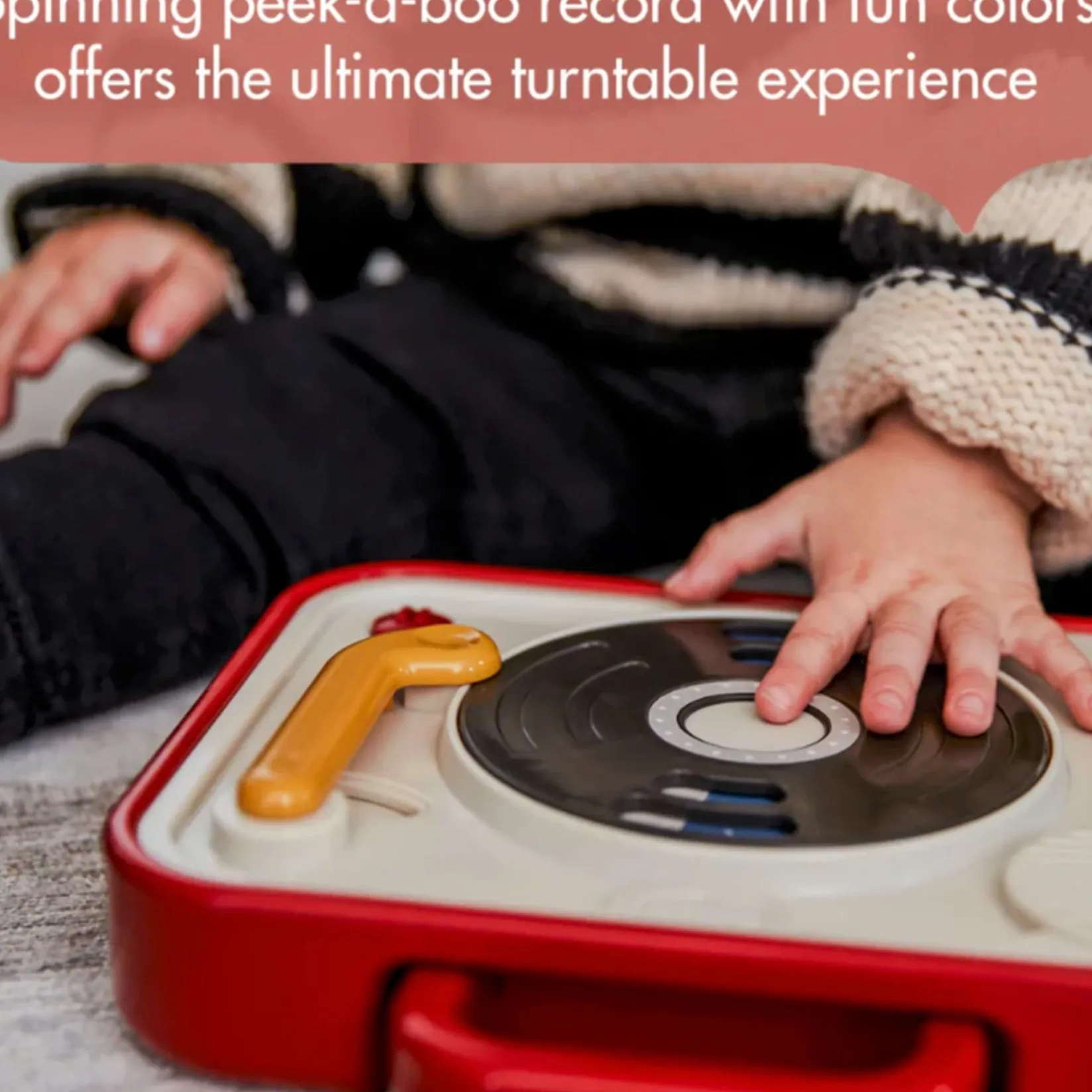 -Spinning peek-a-boo record that reveals fun colors and spins like a real DJ’s