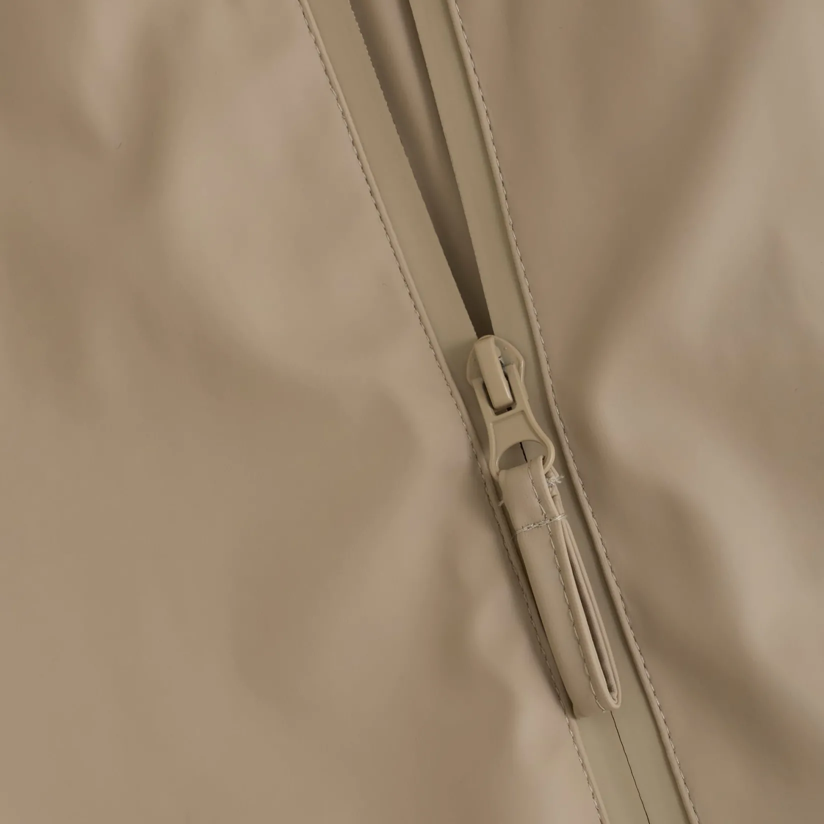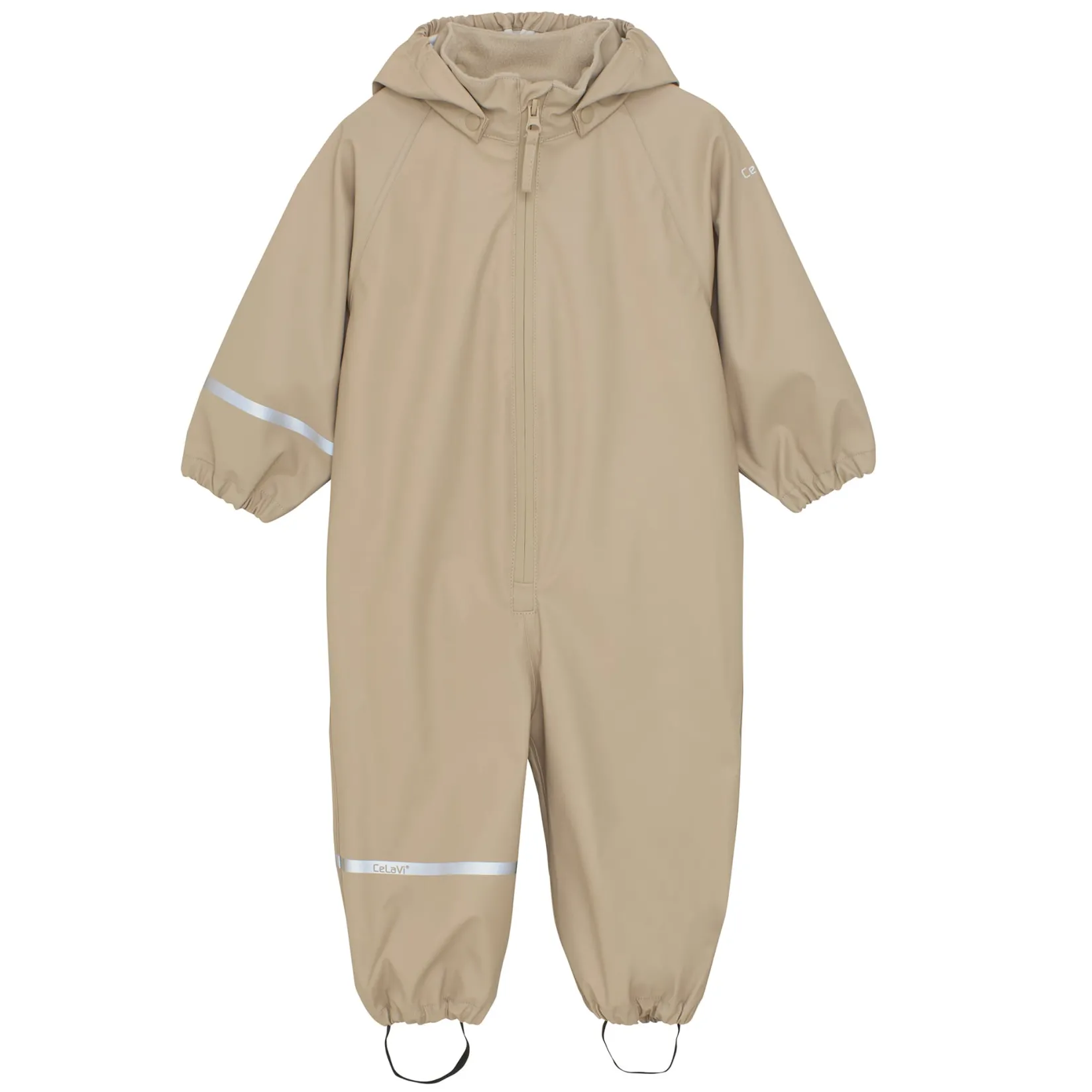 A superb PU rain suit from CeLaVi. It features narrow reflective strips around one sleeve and one leg. The upper arm and hood are adorned with reflective logos. The CeLaVi rain suit has a detachable hood that attaches with a snap-button collar. The hood opening, sleeves, and waist have elastic for a better fit. There are practical, adjustable elastic straps to go under your shoes. The rain suit closes at the front with a zipper and an external windproof flap that closes with snap buttons. Certified according to GRS – Made with 66% recycled materials CERES-0366