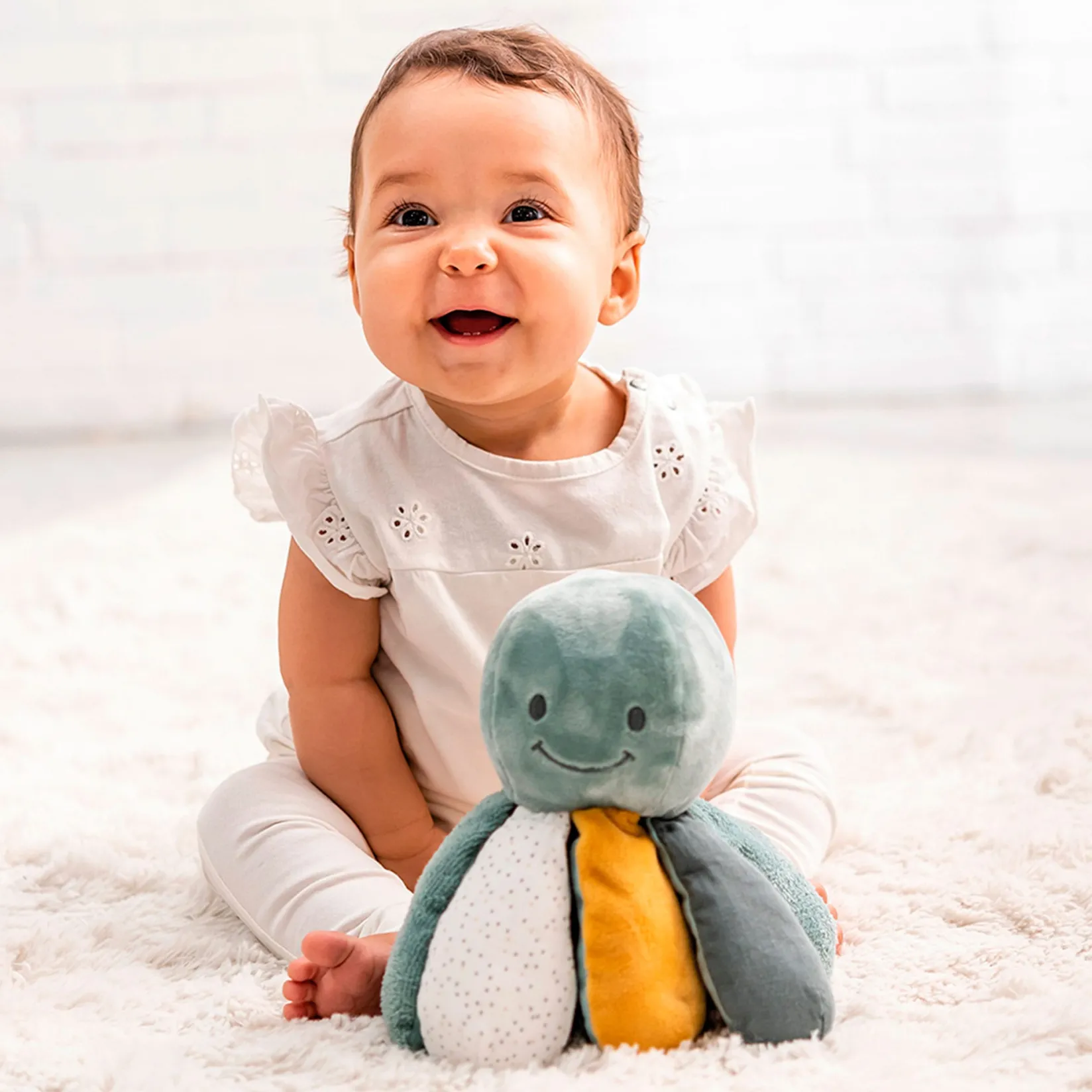 The activity cuddly toy has four entertaining activities at once: rattle, squeak, crackling paper and various gripping possibilities can be explored here. Particularly soft materials and different textures simultaneously promote the development of the sense of touch and invite discovery. The very easy-to-grasp elements make the delightful cuddly toy the ideal companion for babies and newborns.