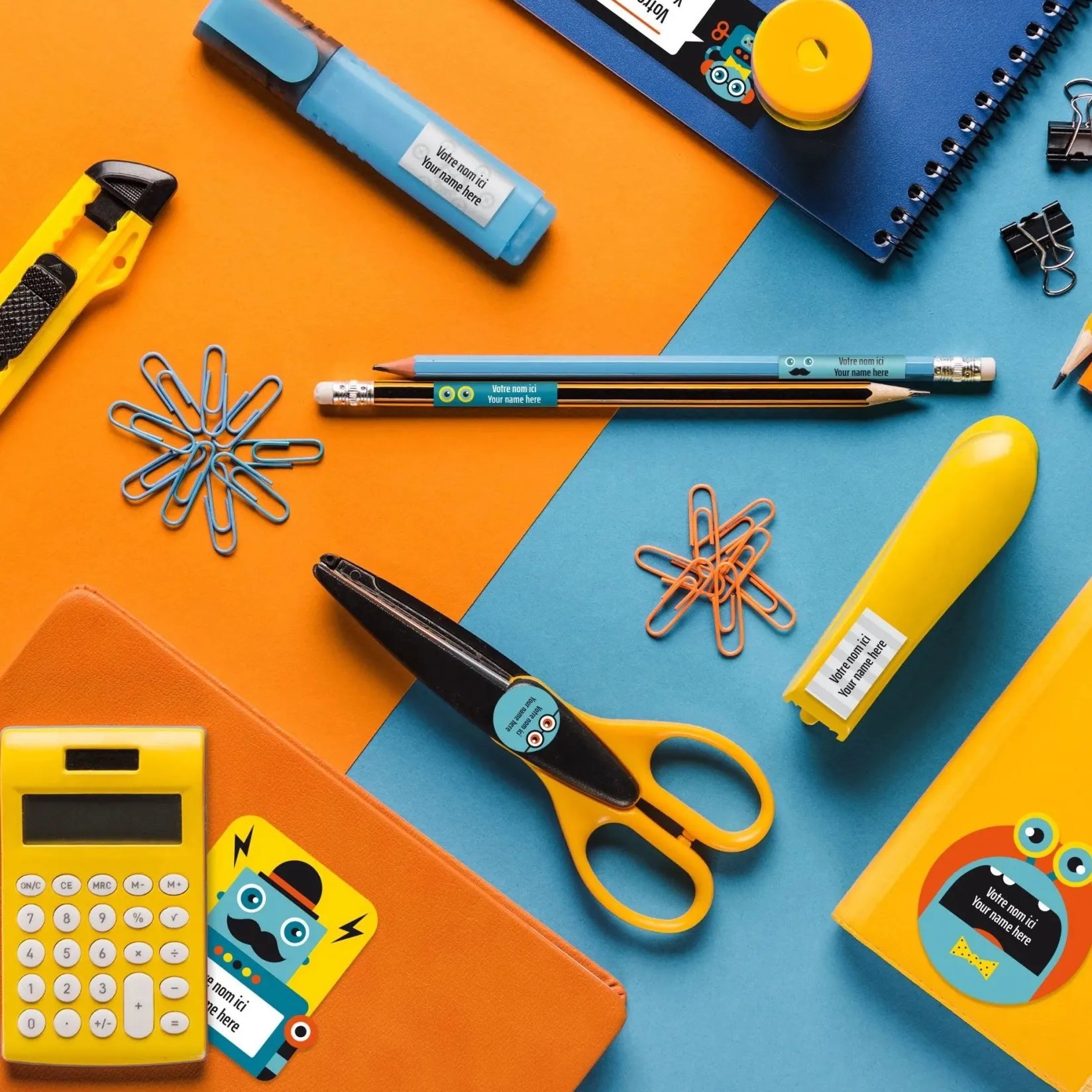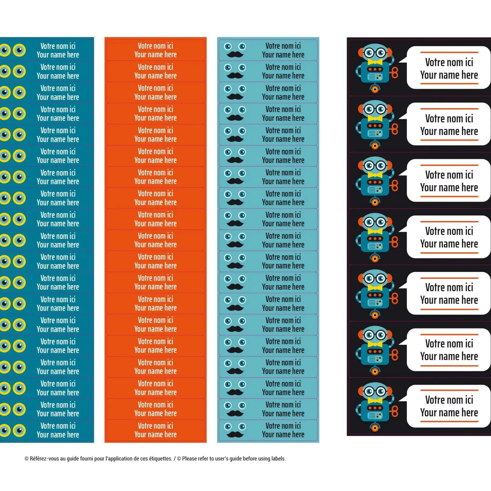 The set of personalized sticky labels Clément becomes your best ally for the quick identification of your family’s personal items. In a few seconds, young and old will be able to recognize their school items, lunchbox items, sports equipment, shoes, clothes, etc. Waterproof and durable, the labels are not afraid of freezing, water, heat, or steam. They are resistant to the microwave, refrigerator, freezer, dishwasher, washing machine, and dryer.