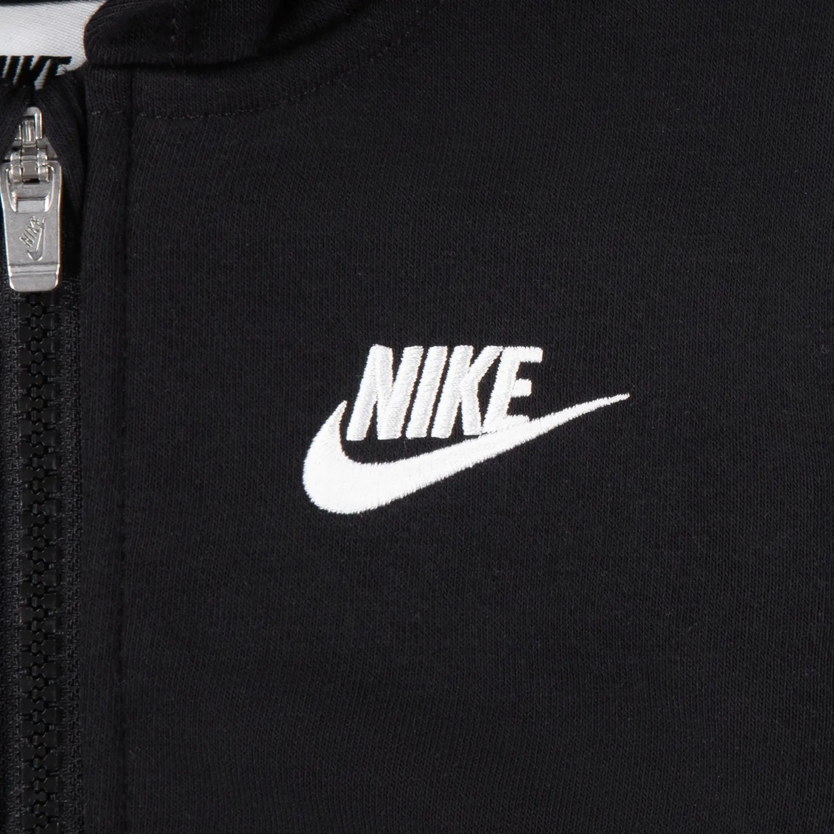 Looking for an easy way to outfit your little one in all-day comfort? This two-piece Nike set, made of soft fleece fabric, has you both covered. The roomy hoodie has a full-zip closure that makes layering over a tee or tank easy and the matching tapered pants have a stretchy waistband for a comfy, secure fit. Pair with any Nike top for a complete look that complements their favorite kicks.
