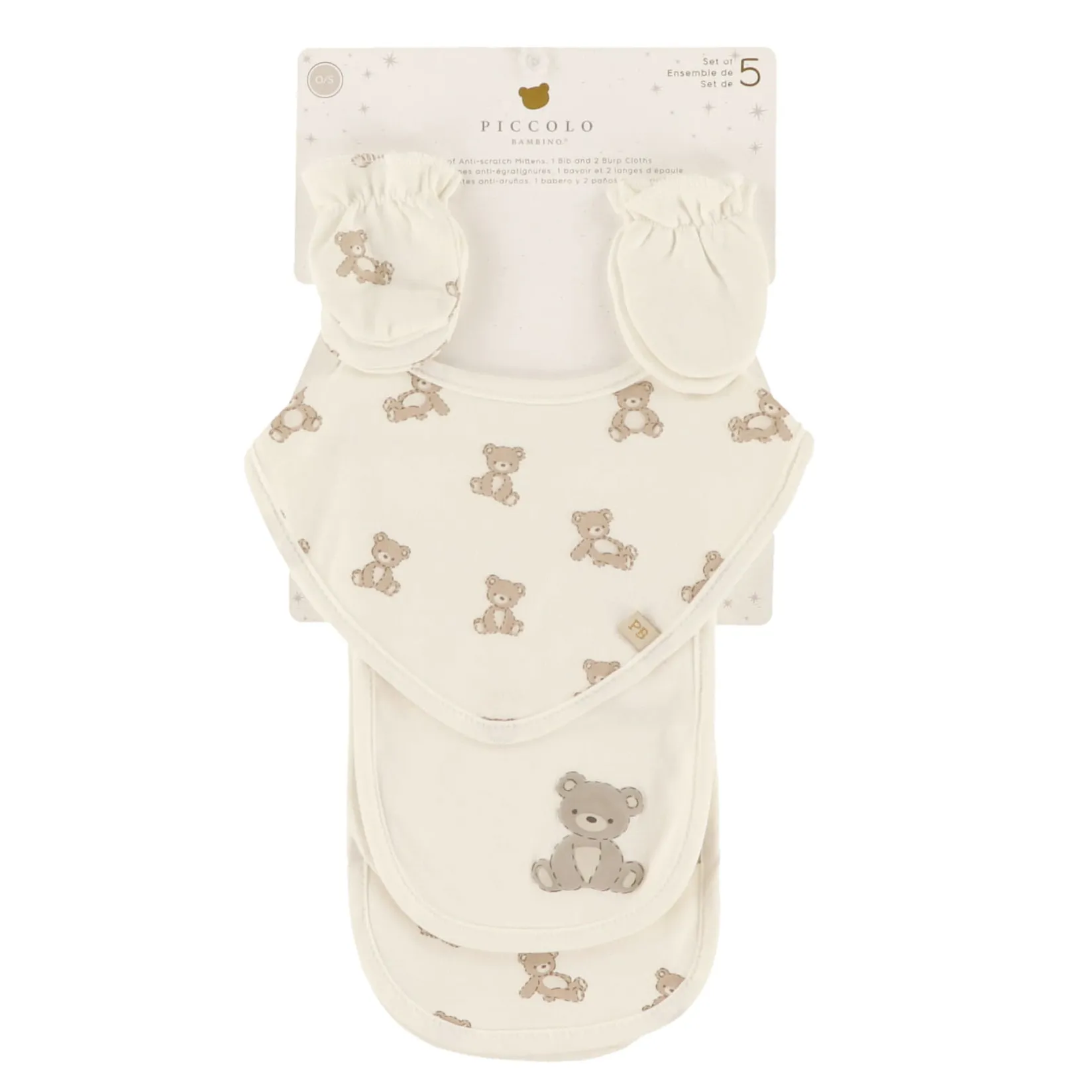 Included: 2 pairs of anti-scratch mittens, 1 bib and 2 burp clothsÂ