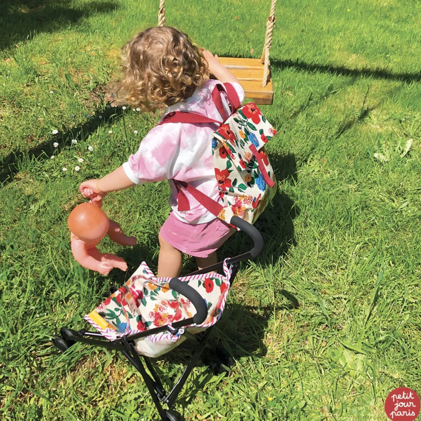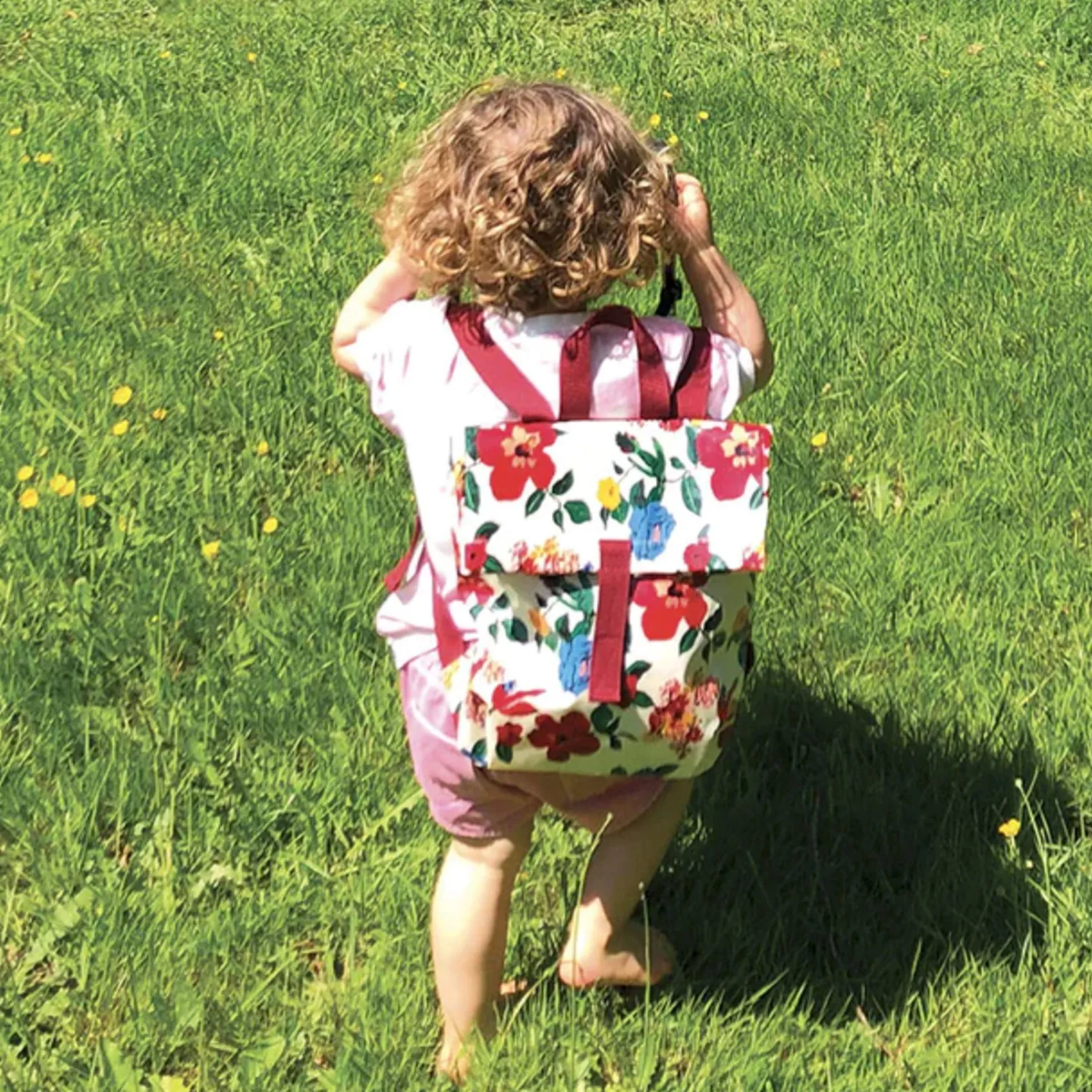 A cotton backpack to transport toy cars, colouring books, a change of clothes or plushies! Ultra light, practical with a simple flap and a velcro ribbon to close it.