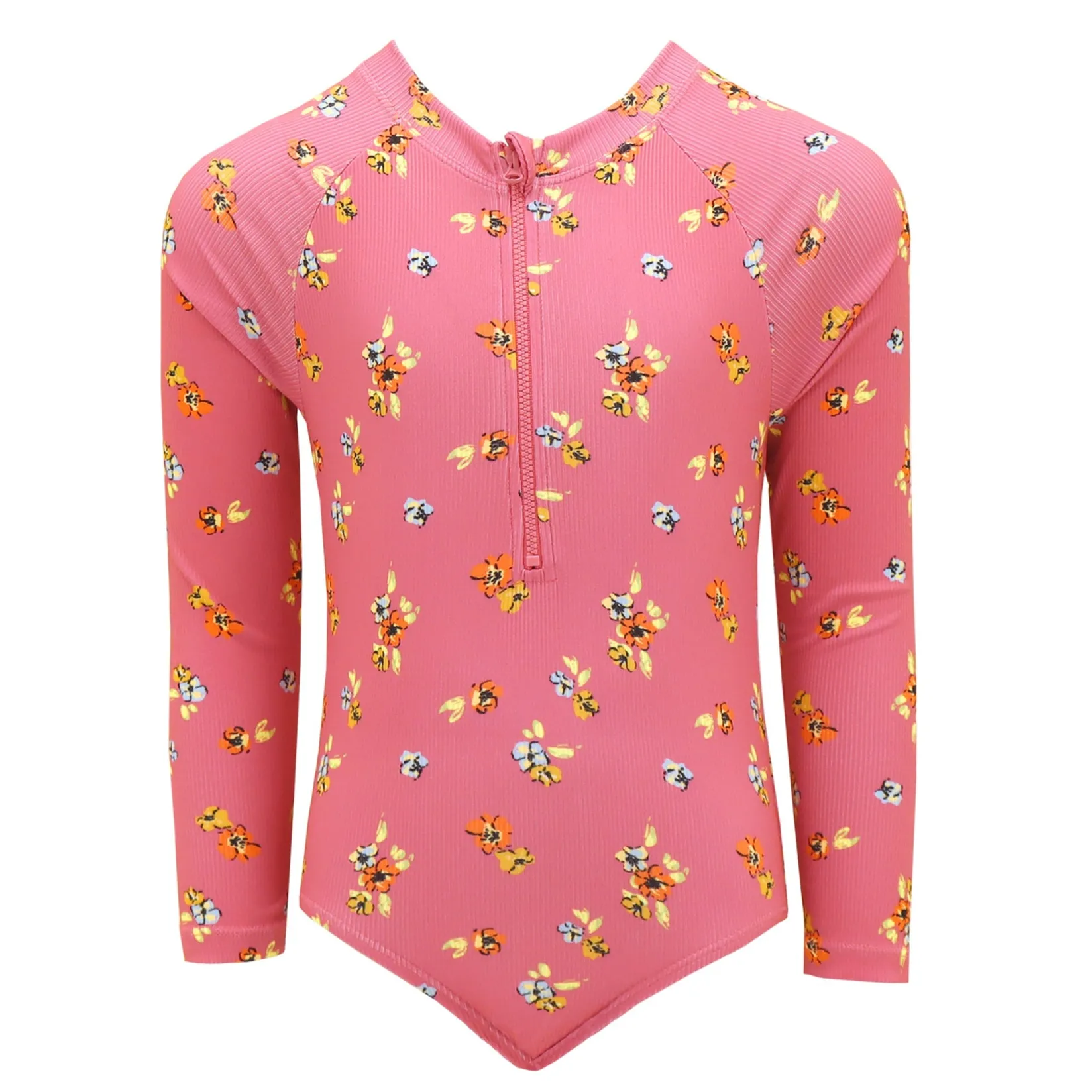 Outlet Rib Flowers Long Sleeves Swimsuit 2-14y Kids Swimsuits