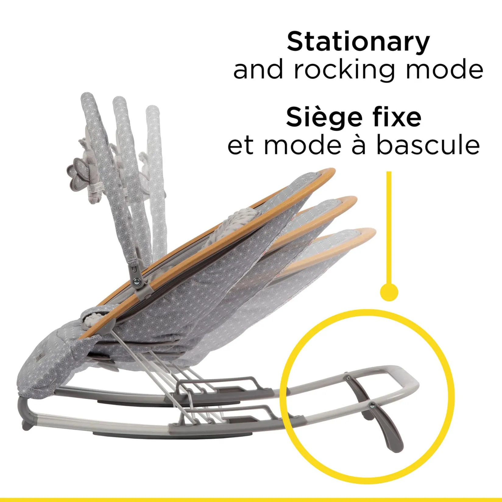 -[MODES THAT ROCK] The Safety 1st® Amherst Baby Rocker has two modes of use – stationery and hand rocked giving the sensation of motion for your baby effortlessly.