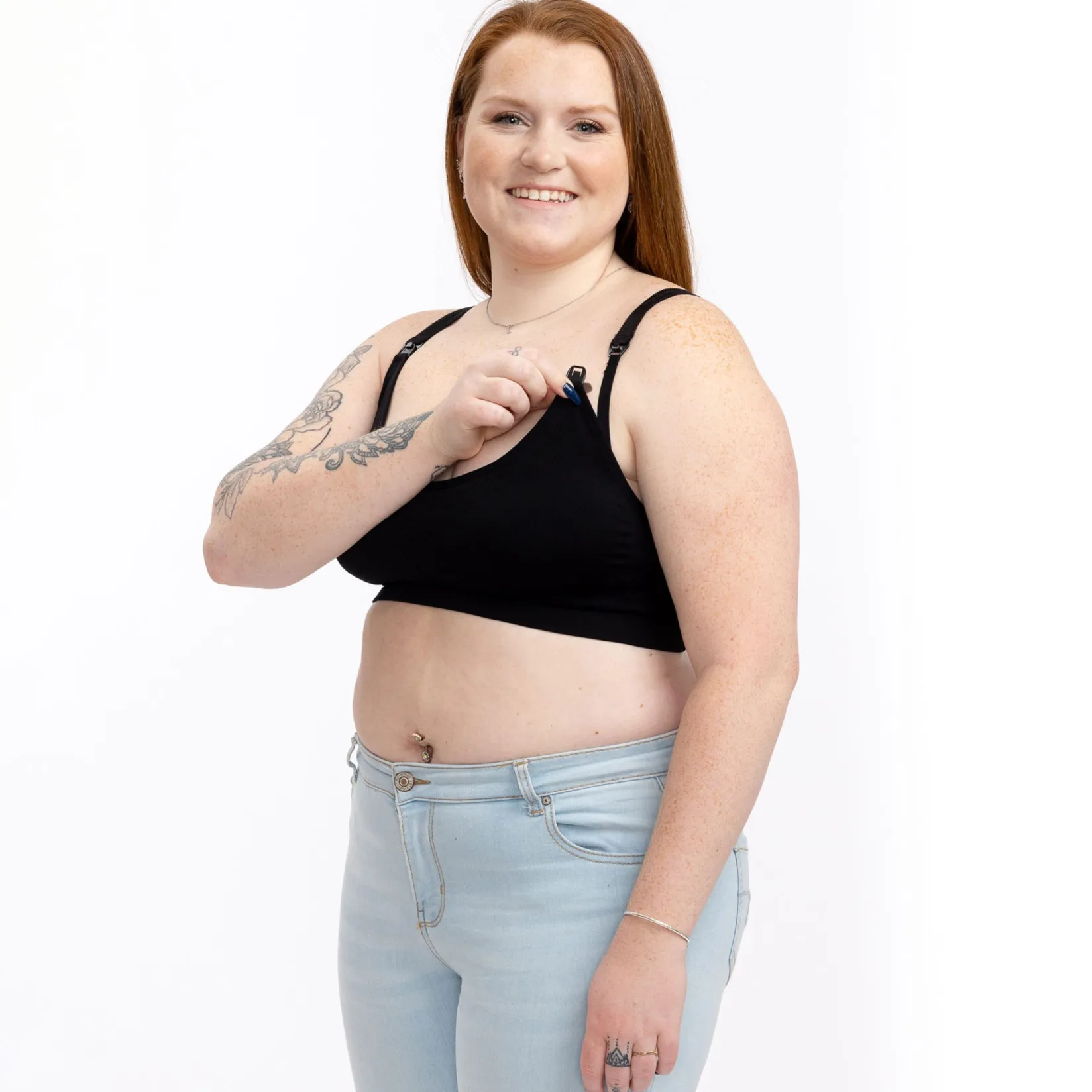 -Odor-free comfort stretch fabric available in nude or navy polka dots; sizes XS–XL