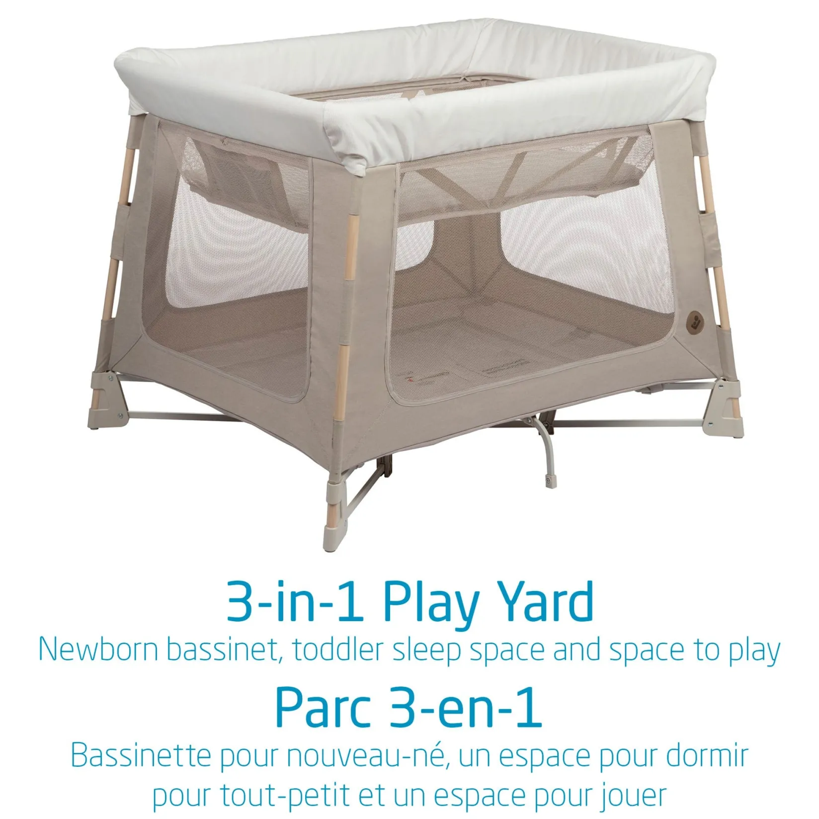 -3-in-1 Play Yard; Featuring a newborn bassinet, toddler nap space (supervised) and space to play all-in-one.”