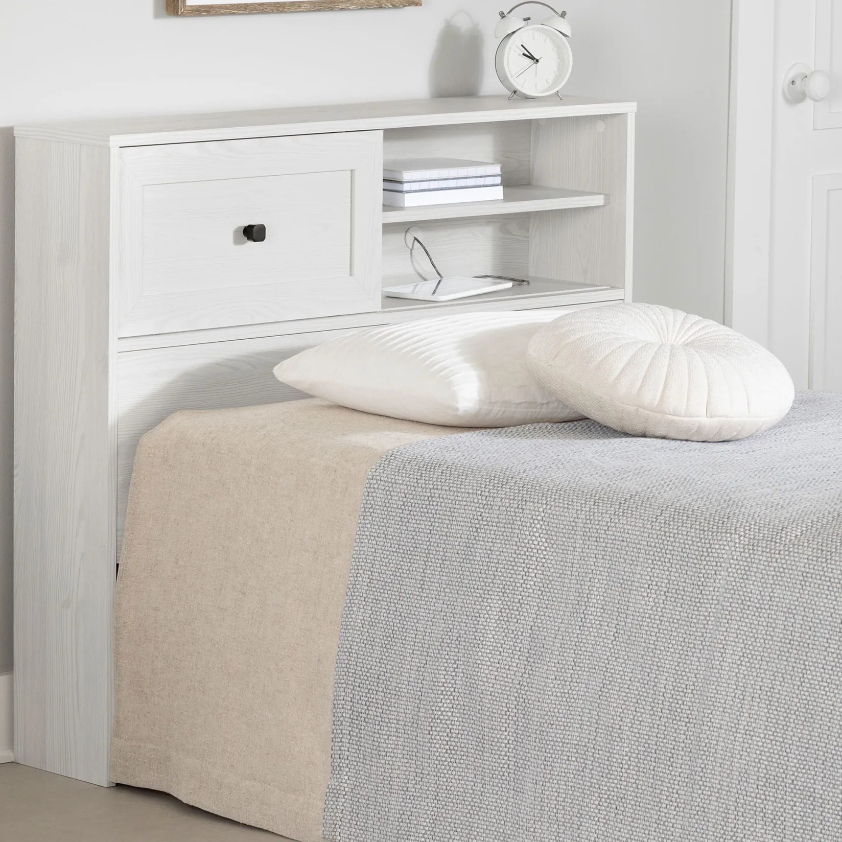 Make every corner of your child’s room functional with this bookcase headboard that is as pretty as it is practical. Adding to its framed door, delicate handle and bold farmhouse style is a ton of storage. Slide the door open to organize books, toys, and other accessories, then enjoy the open space with a fixed shelf and grommet hole to keep a tablet, alarm clock and nightlight close at hand.